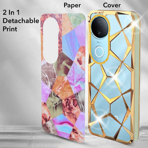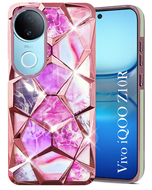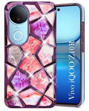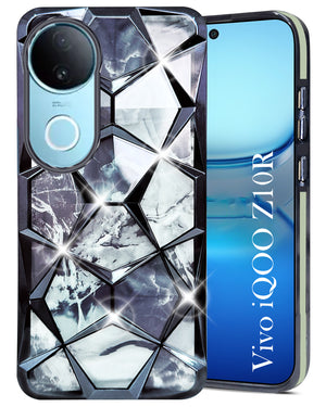 For Vivo iQOO Z10R Back Cover Case ( Dual Design Glitter Sparkle and Detachable Diamond Print Case | Soft and Flexible)