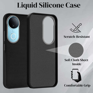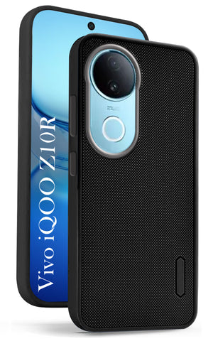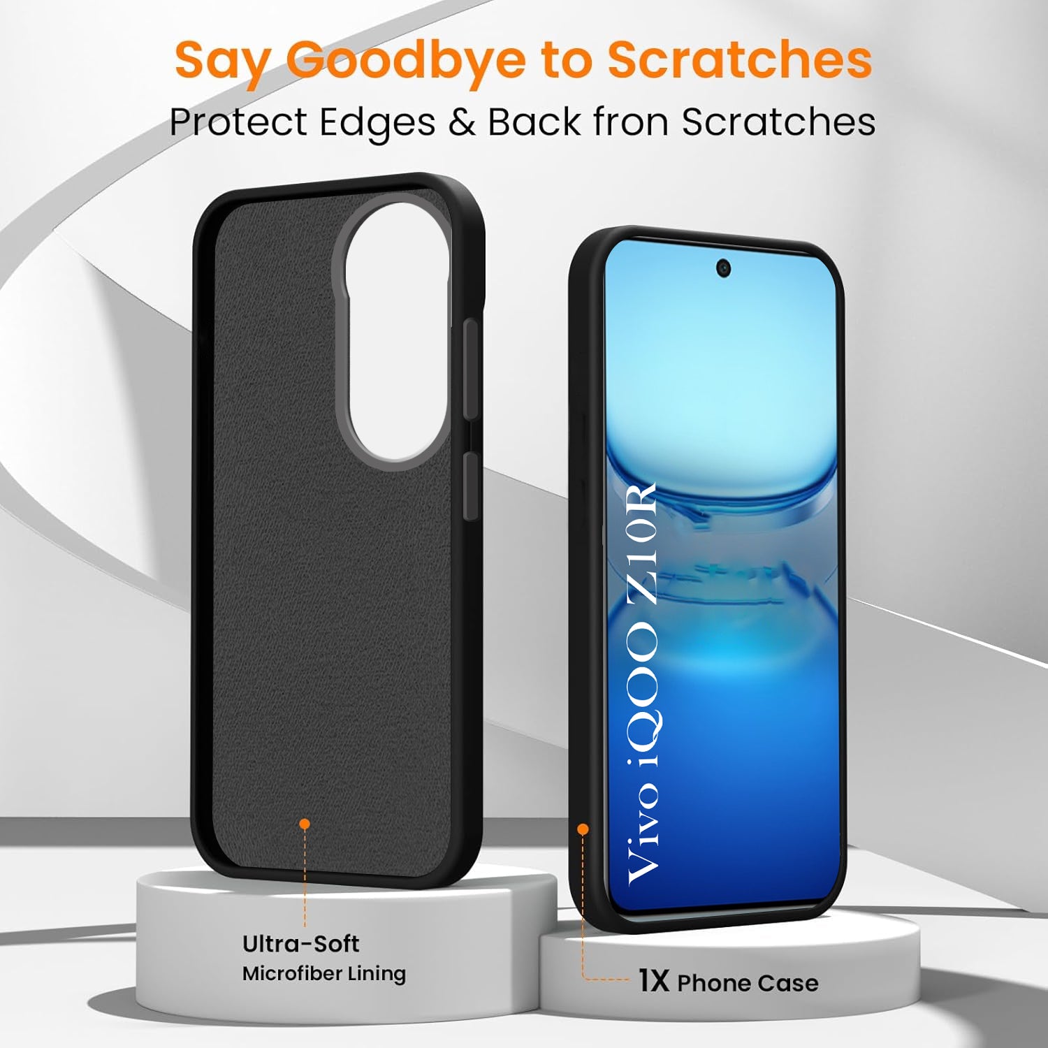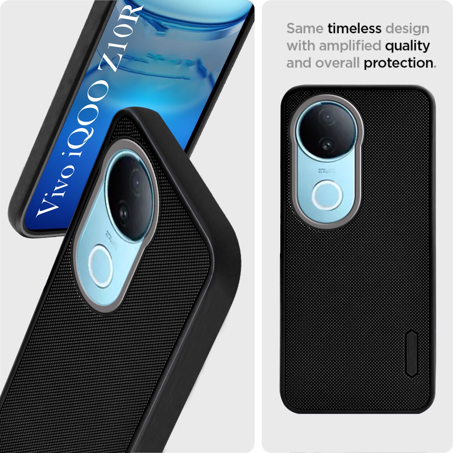 For Vivo iQOO Z10R Back Cover Case (Textured Grip Design | Micro-Fiber Cloth Inside | Slim and Light Weight | Soft Touch and Feel | Black)