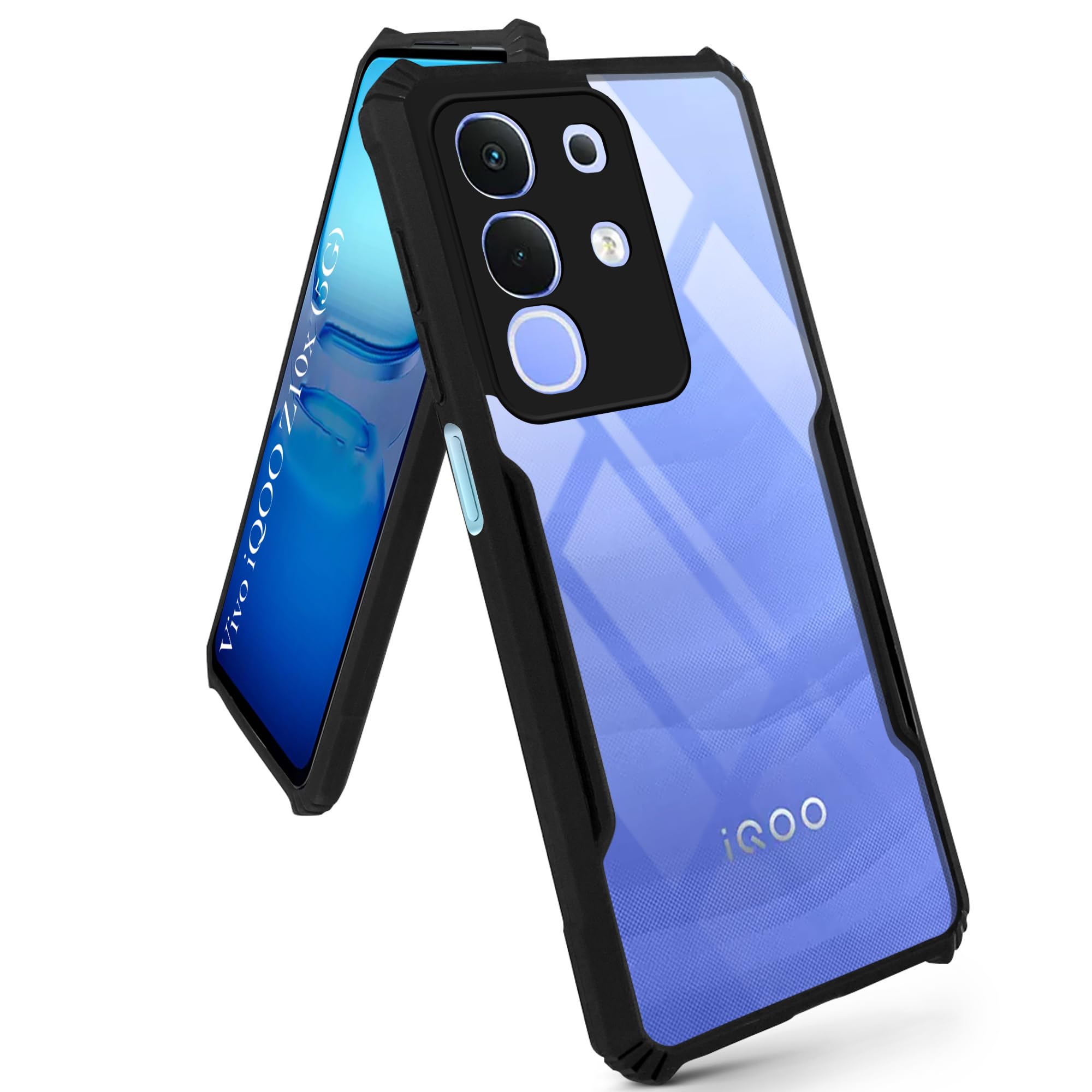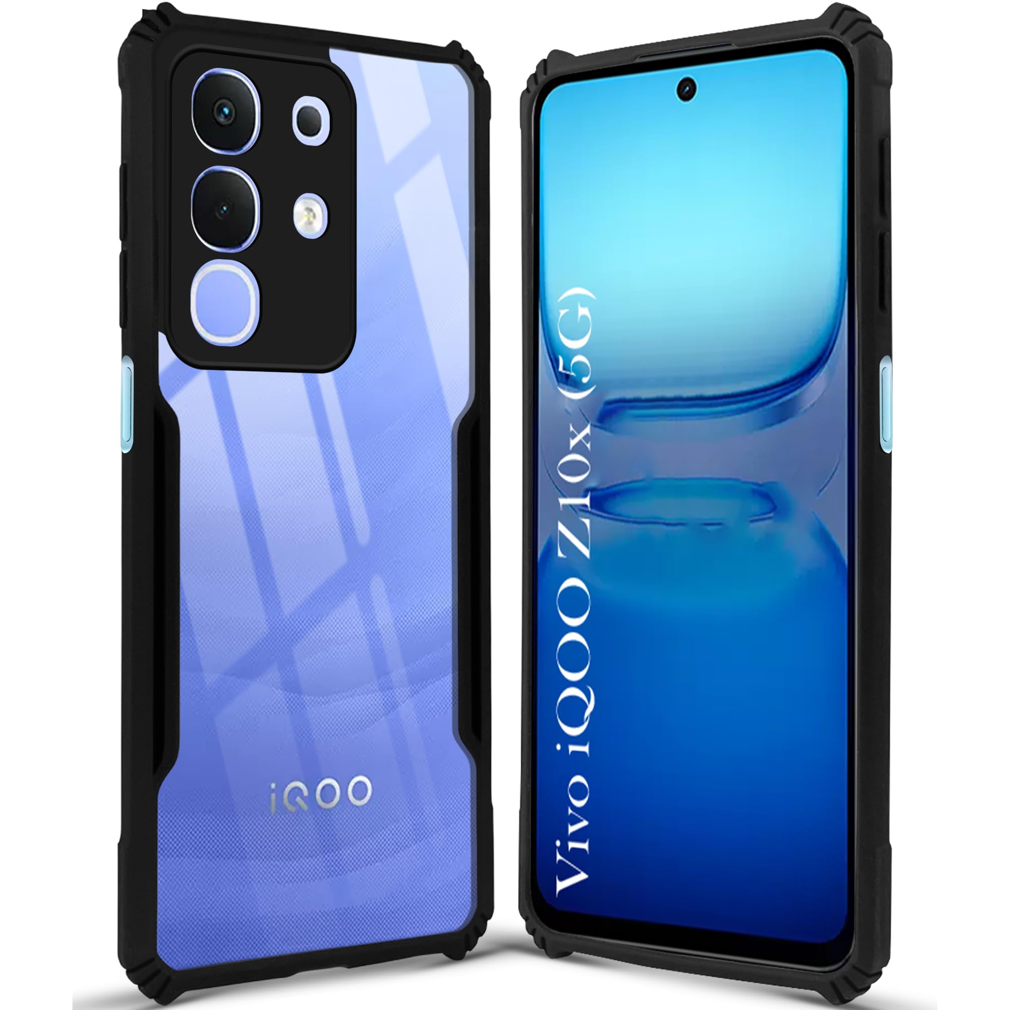 For Vivo iQOO Z10x Back Cover Case ( Shockproof with Polycarbonate Clear Panel | Professional Black)