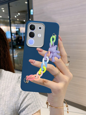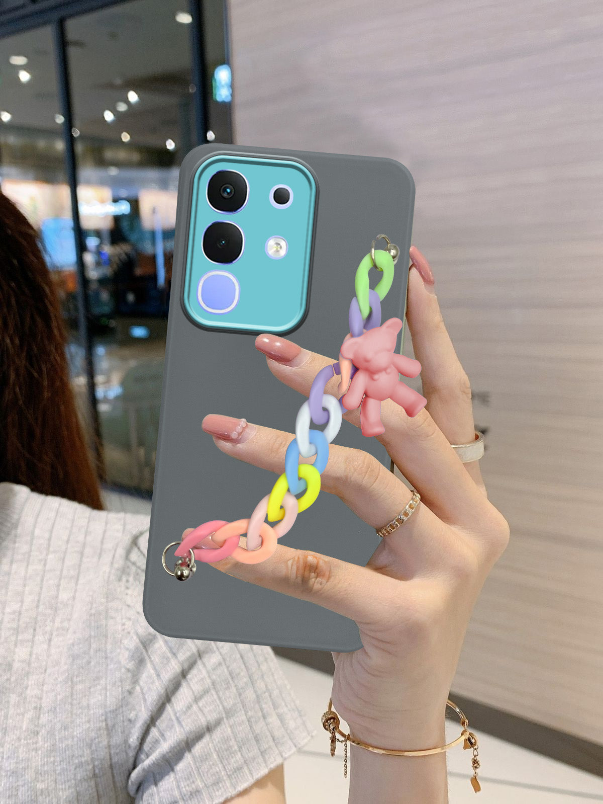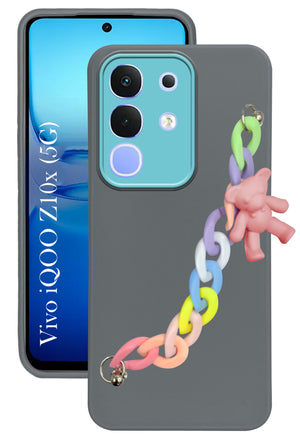For Vivo iQOO Z10x Back Cover Case ( Wrist Hanging Chain | Teddy Bracelet Charms | Dual Color Matte Finish | Full Camera Protection | Sleek and