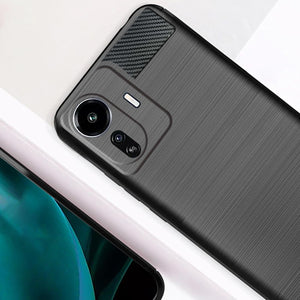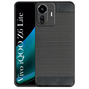 For Vivo iQOO Z6 Lite 5G Back Cover Case ( Hybrid Armor Case | Carbon Fiber Shockproof | Soft and Flexible | Black )