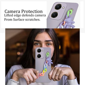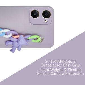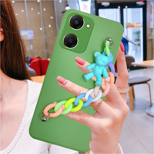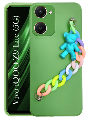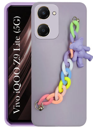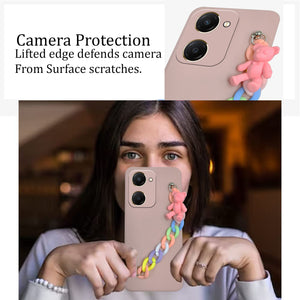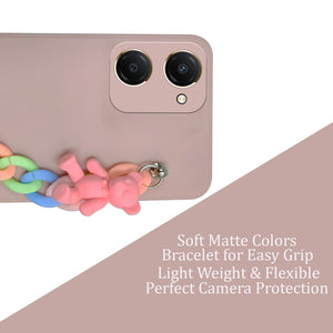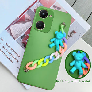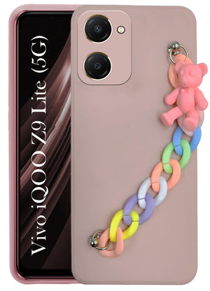 For Vivo iQOO Z9 Lite 5G Back Cover Girls Case with Bracelet (Wrist Hanging Chain | Teddy Toy Cartoon)
