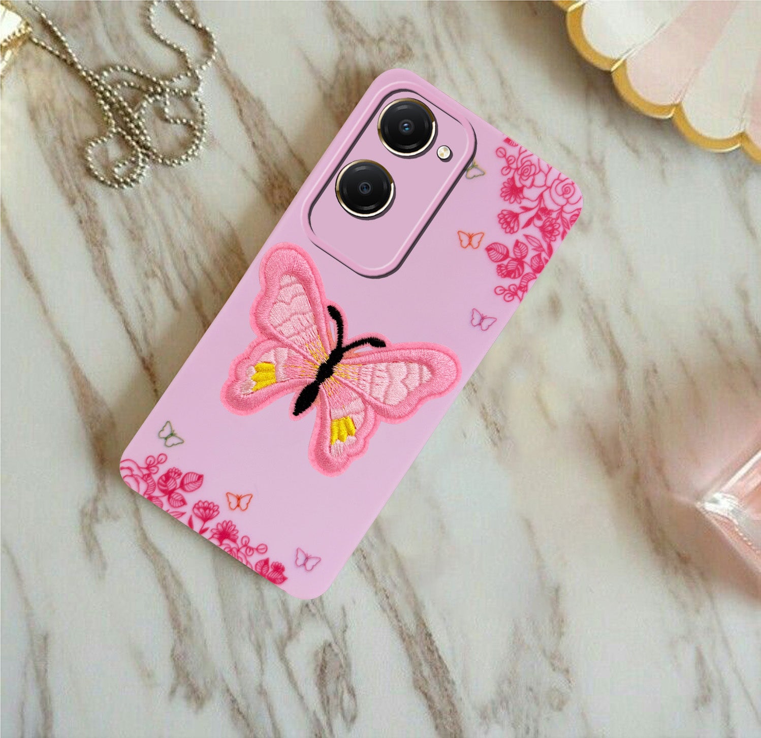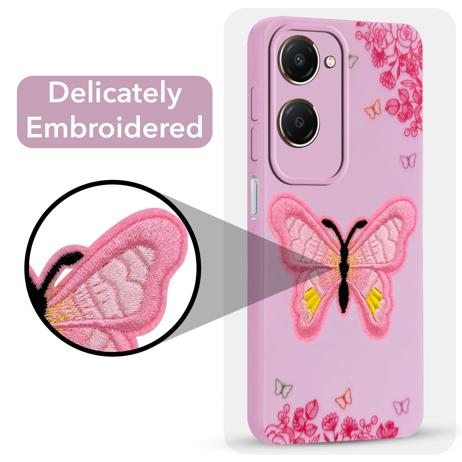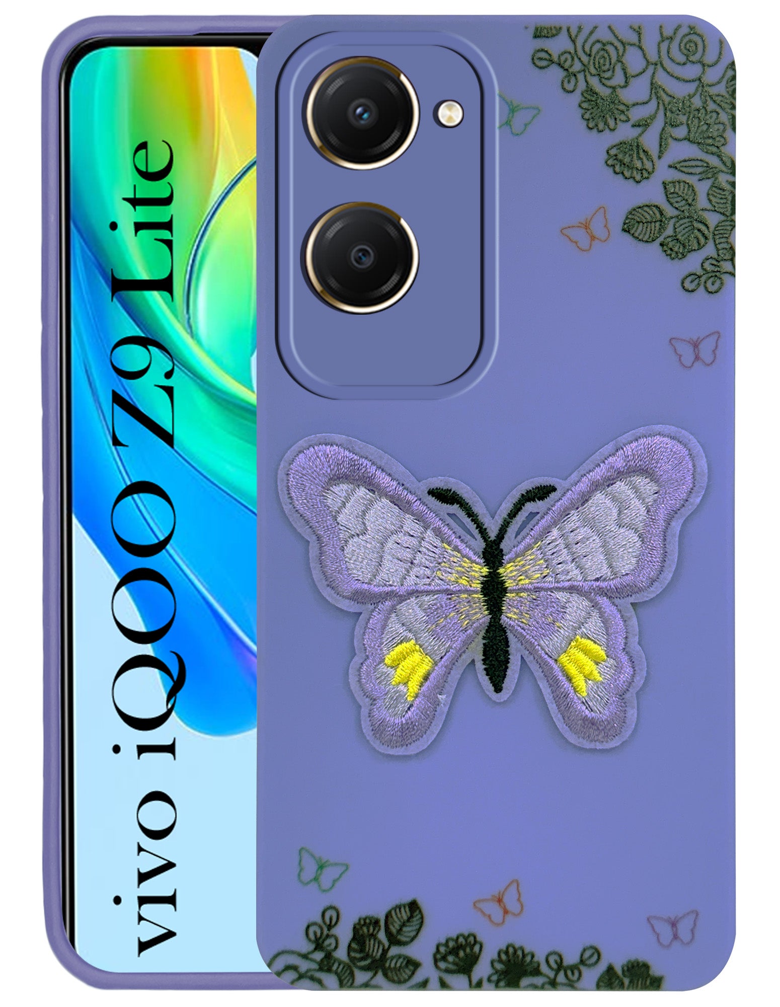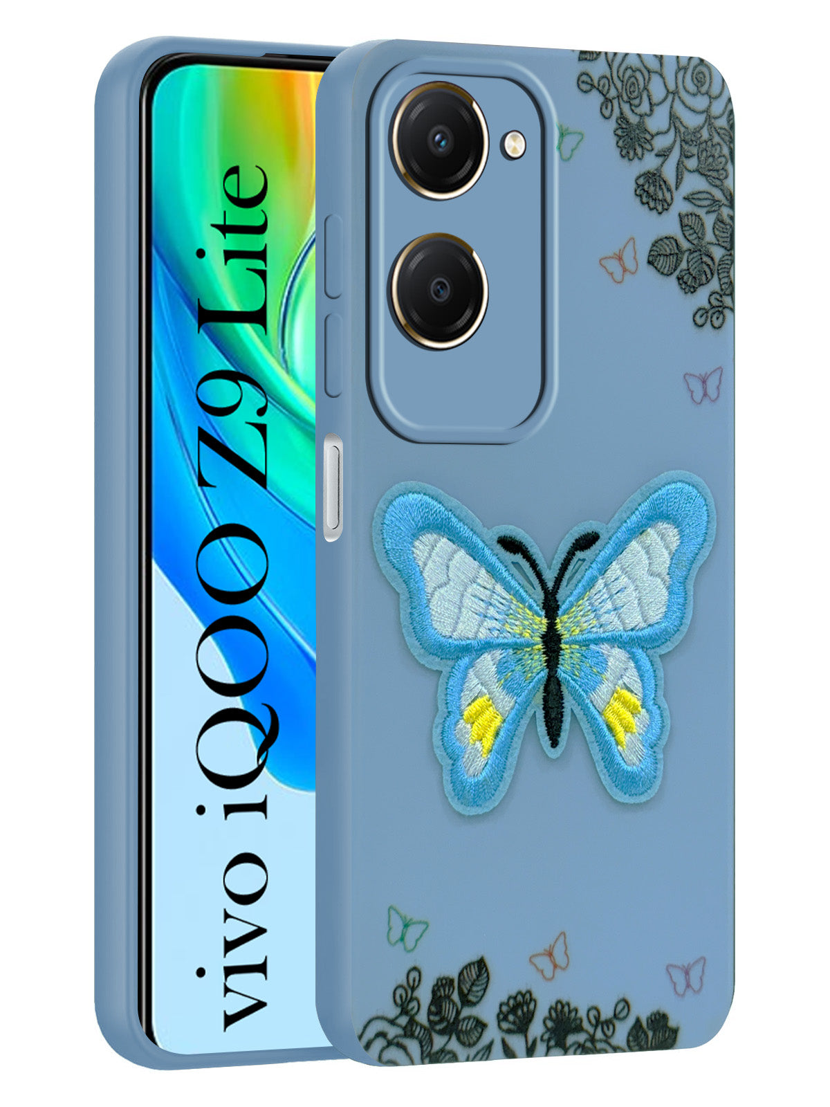 For Vivo iQOO Z9 Lite Back Cover Case (Soft Butterfly Embroidery | Women Teen Girls | Camera Protection| Matte Silicone)
