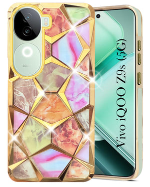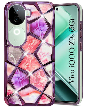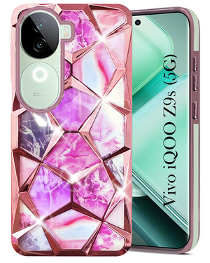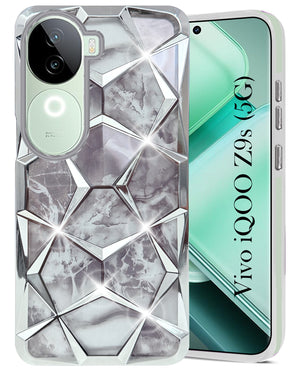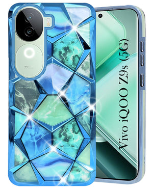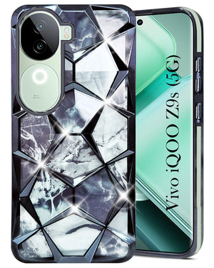 For Vivo iQOO Z9s Back Cover Case ( Dual Design Glitter Sparkle and Detachable Diamond Print Case | Soft and Flexible)