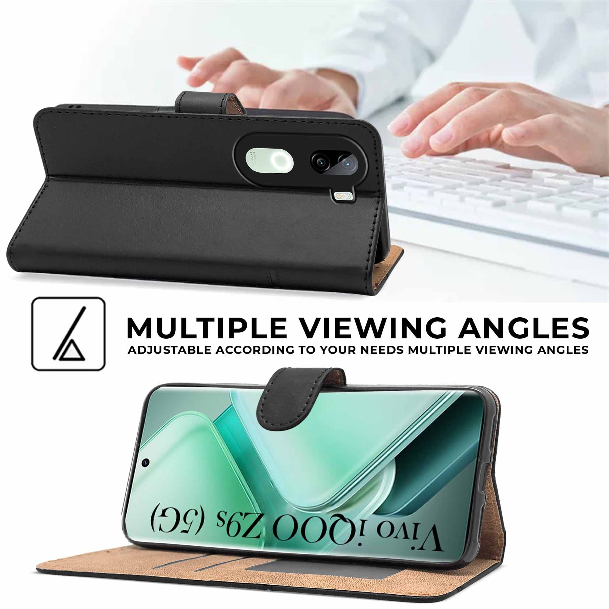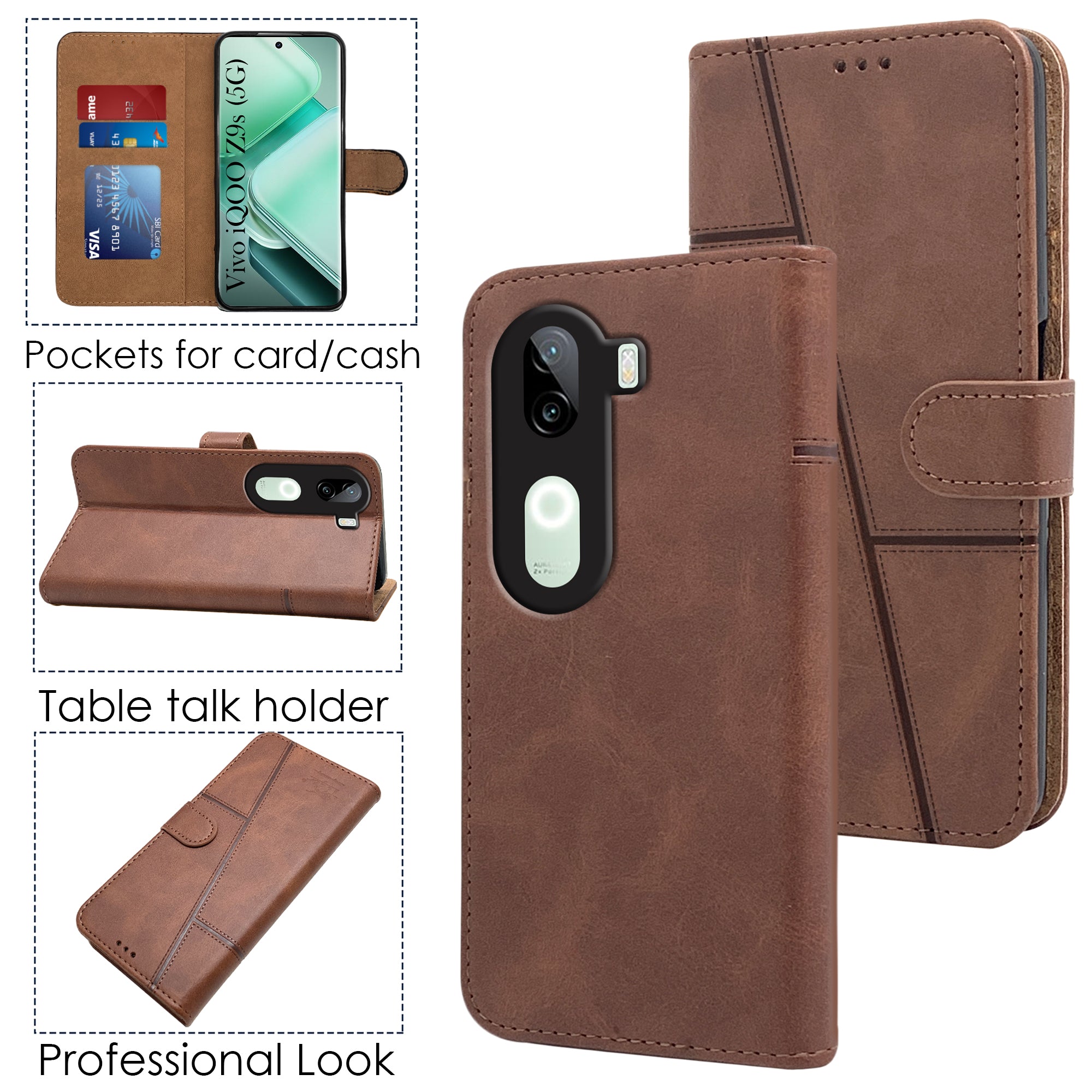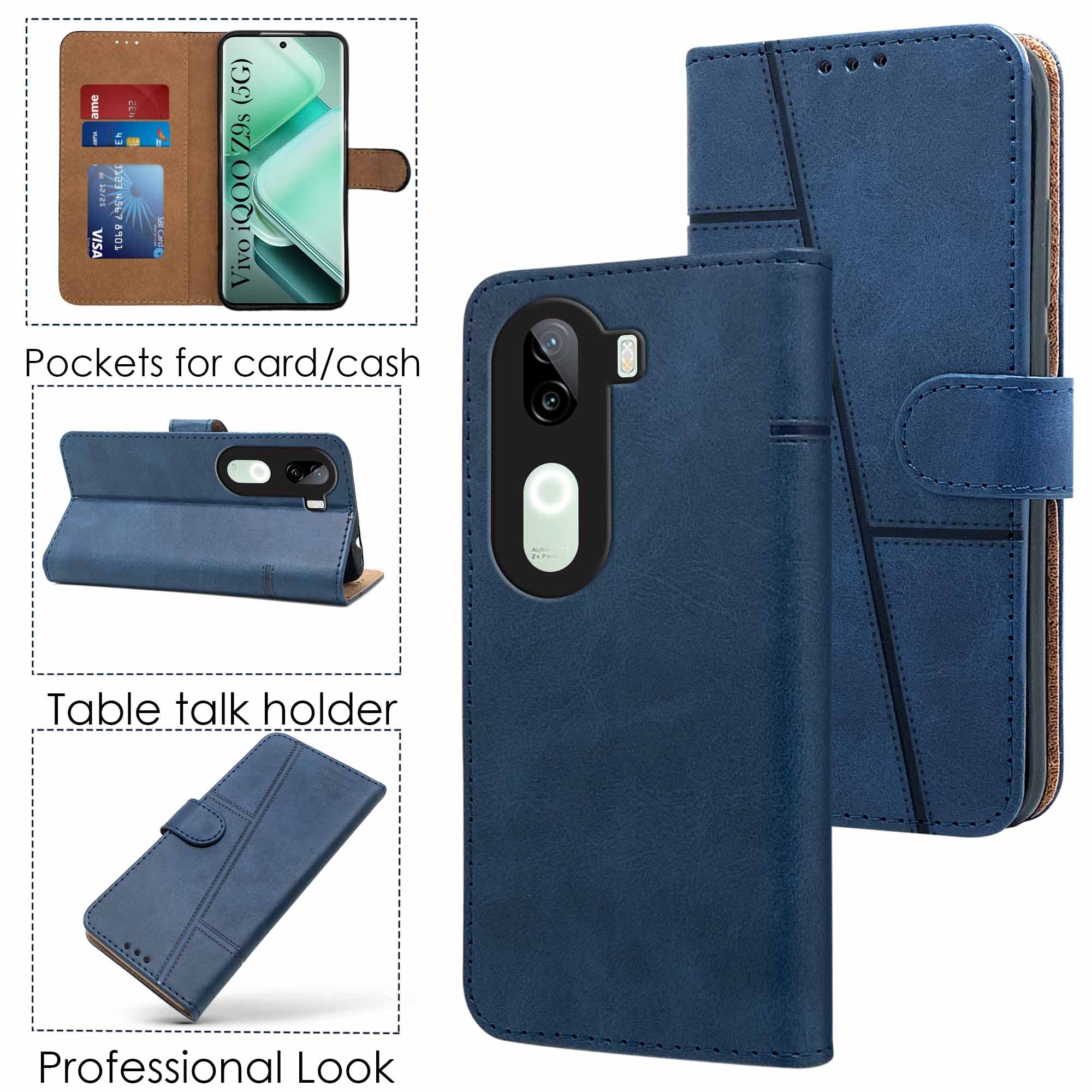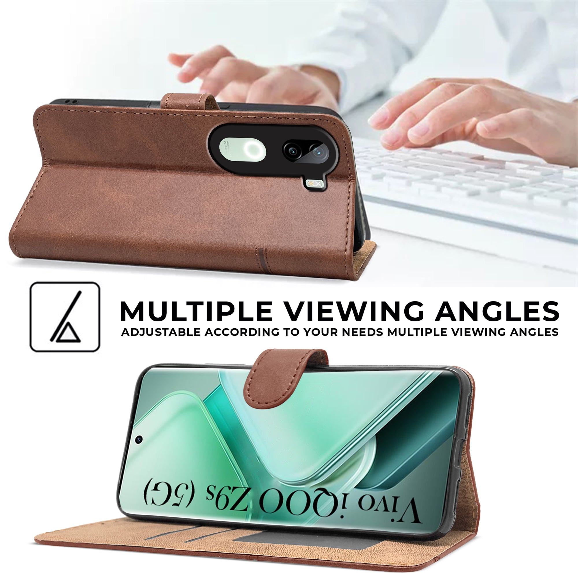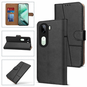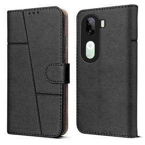 For Vivo iQOO Z9s Flip Cover Case (Stitched Leather with Magnetic Closure)