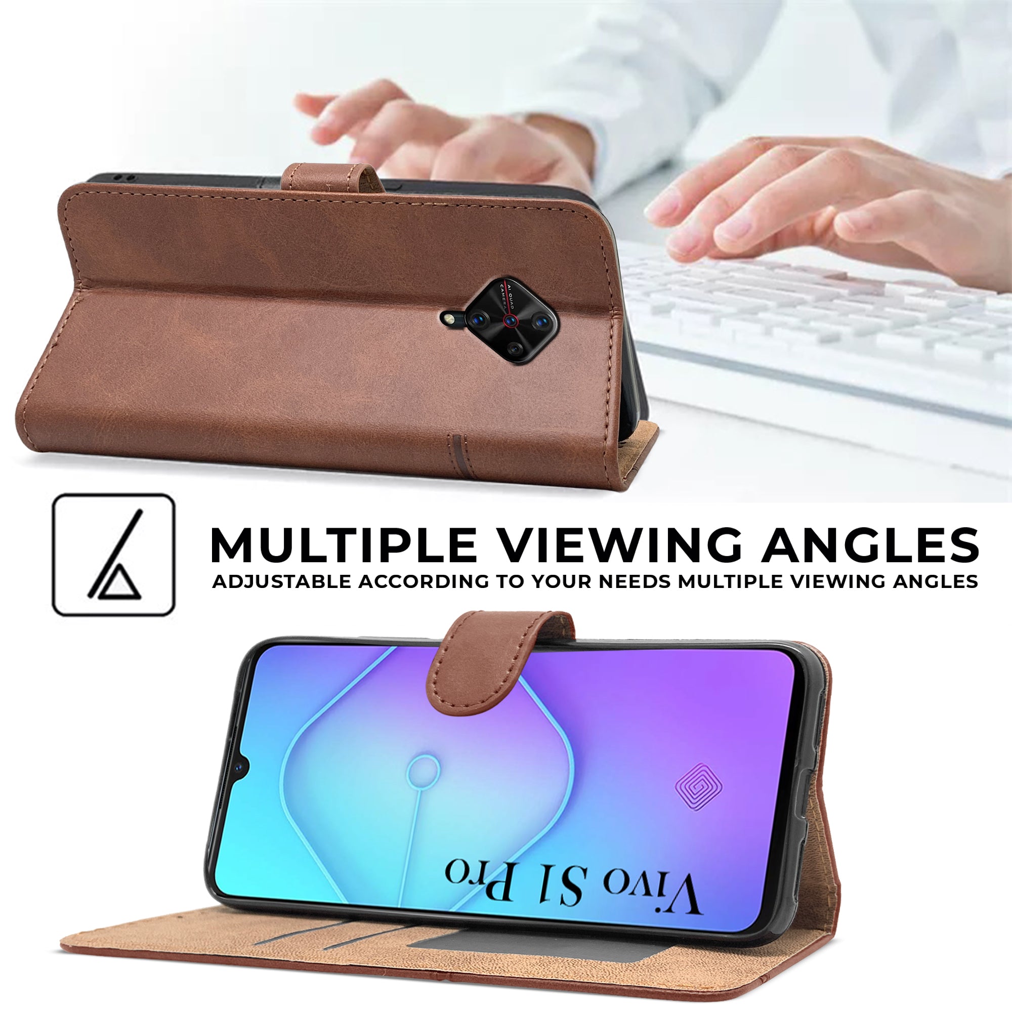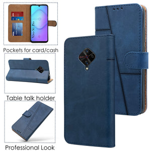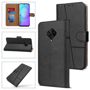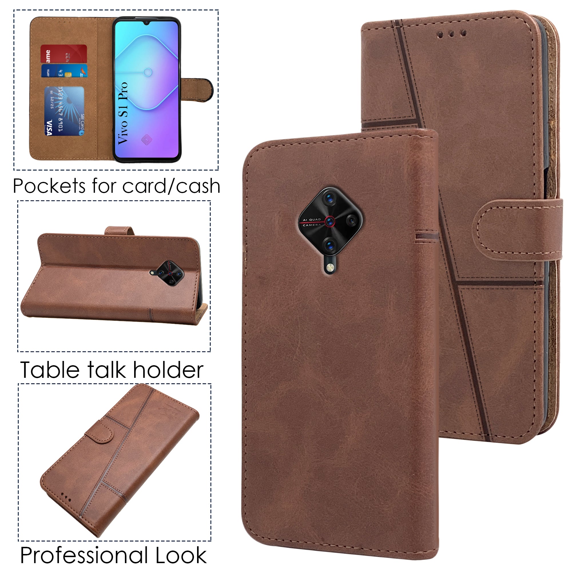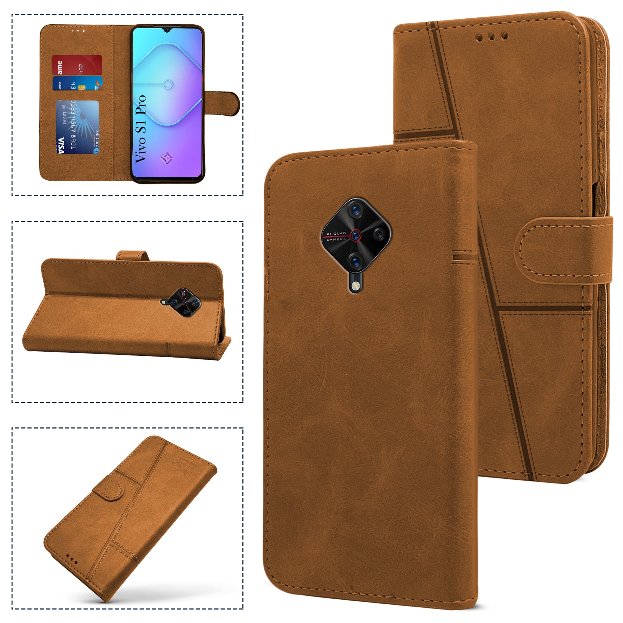 For Vivo S1 Pro Flip Cover Case (Stitched Leather with Magnetic Closure)