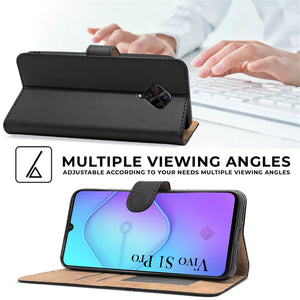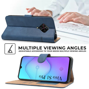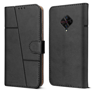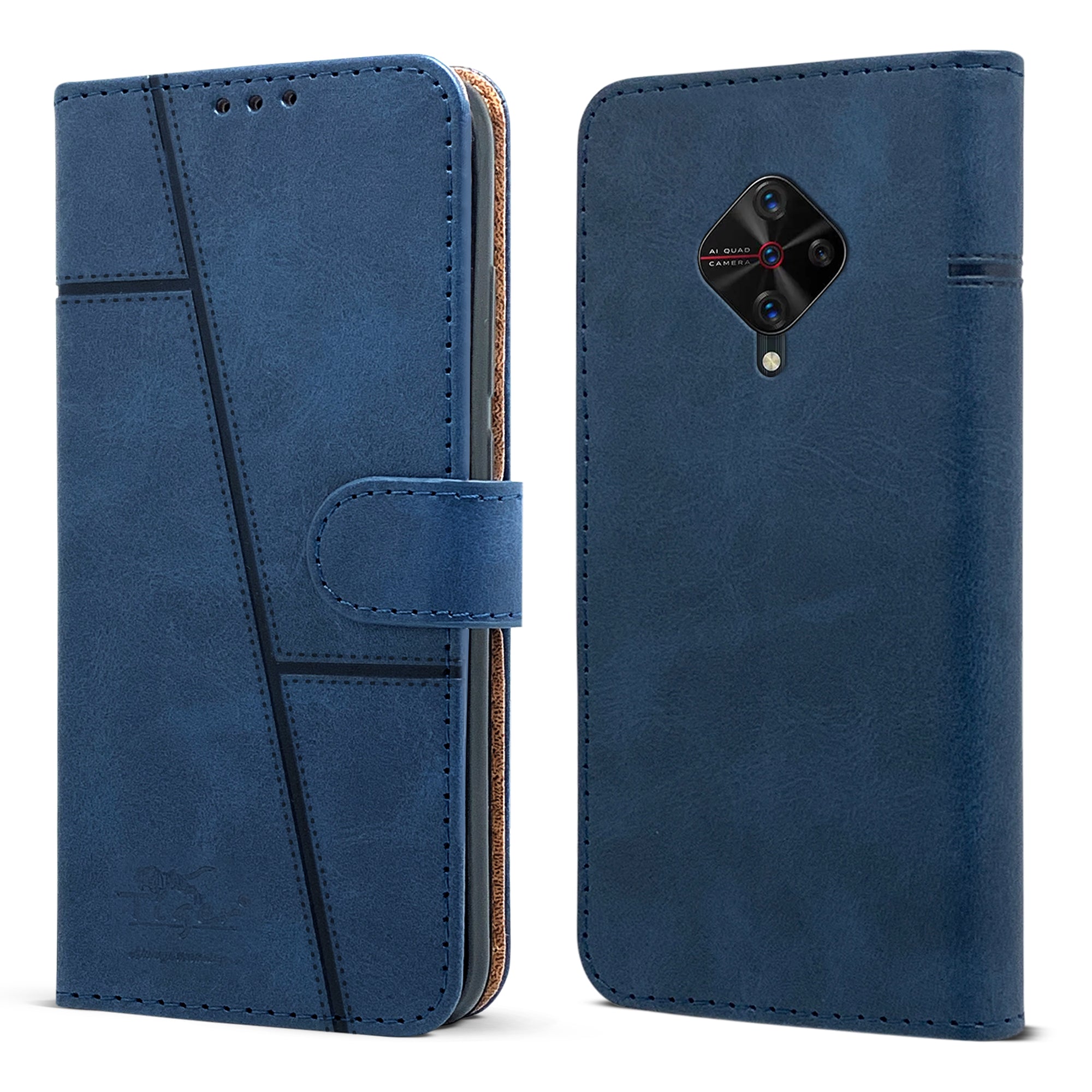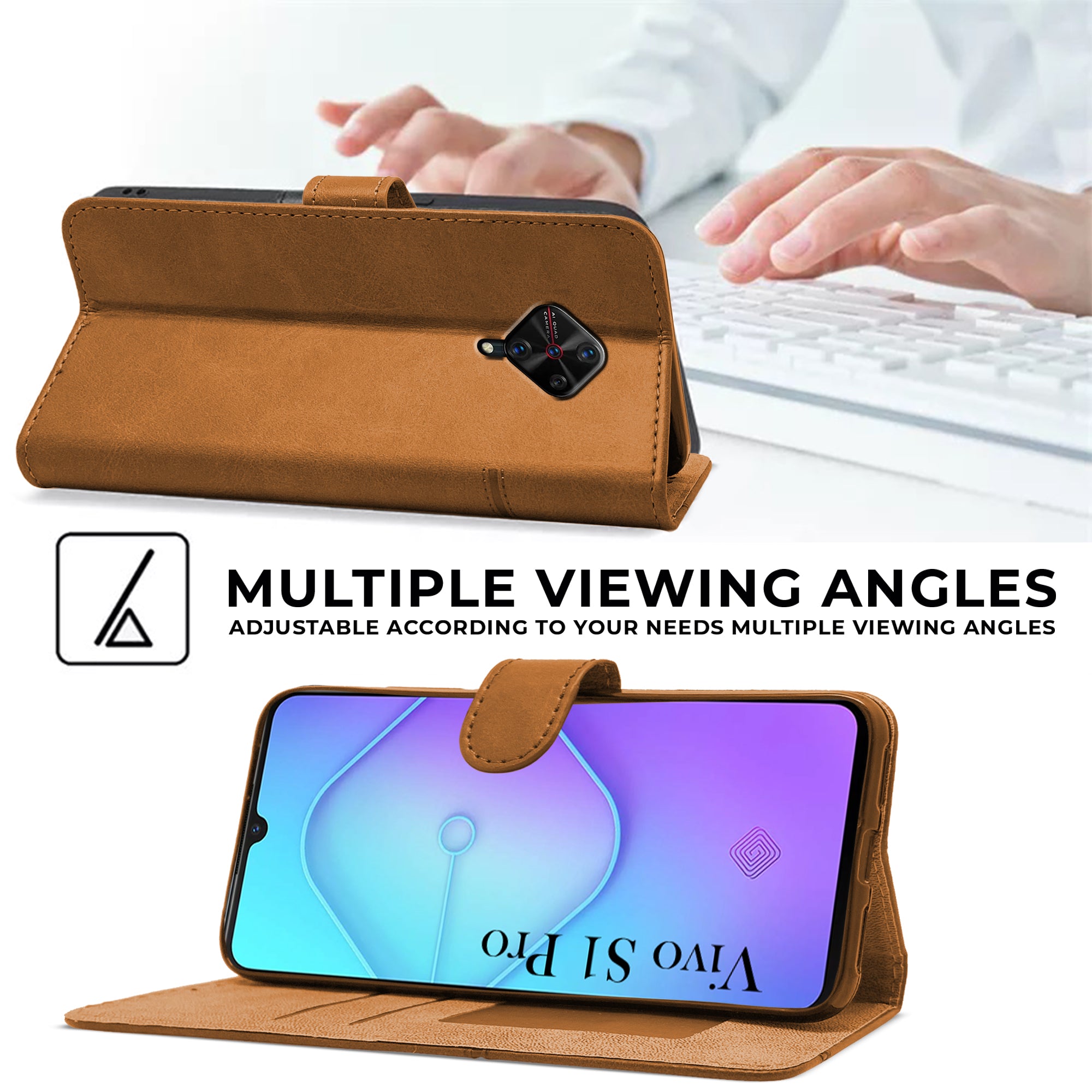 For Vivo S1 Pro Flip Cover Case (Stitched Leather with Magnetic Closure)