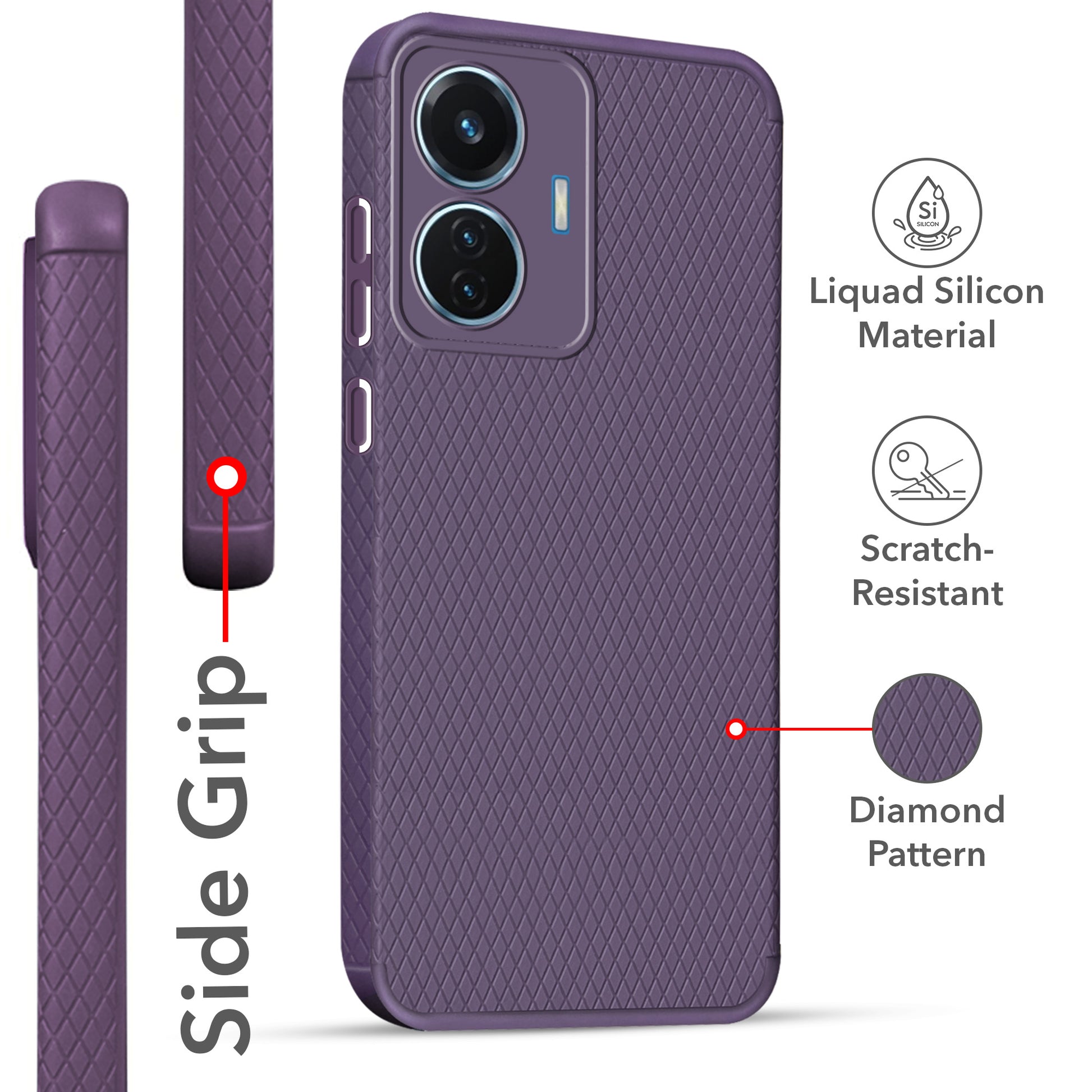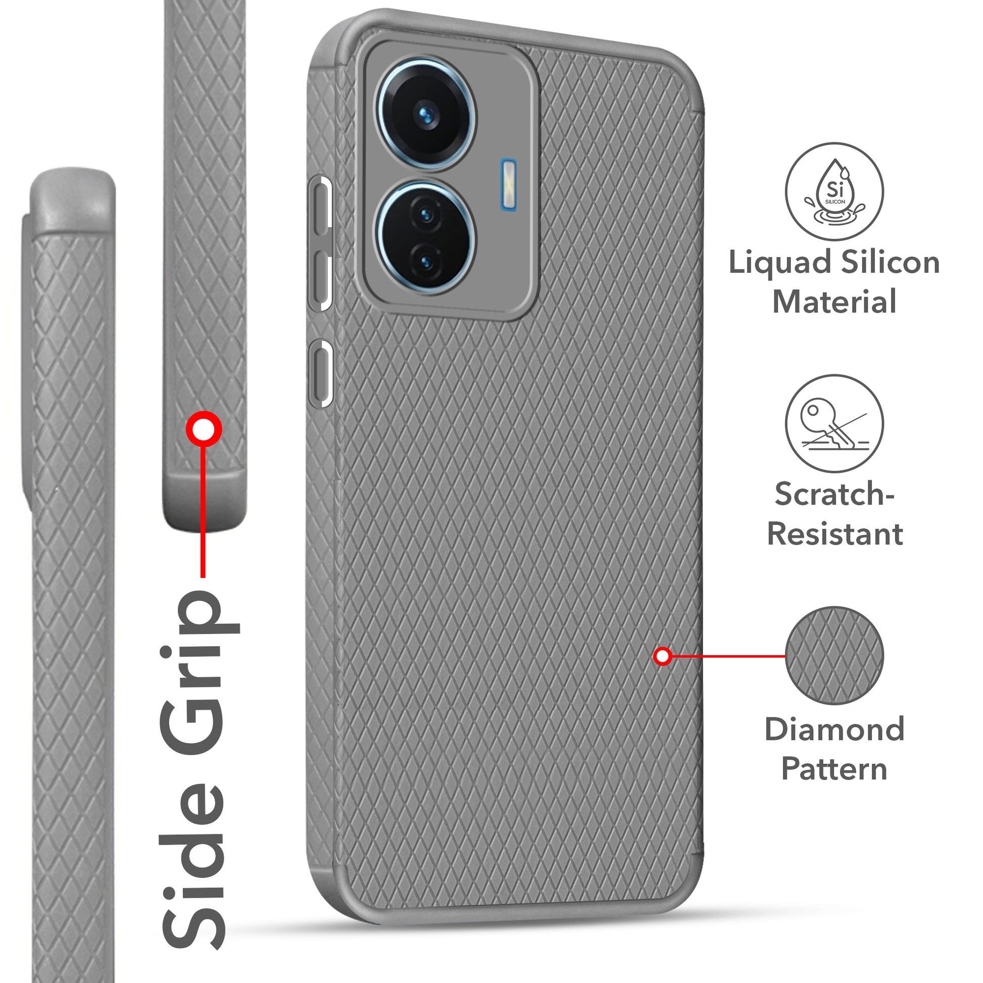 For Vivo T1 44W Back Cover Case (Liquid Silicone | Side Grip | Camera Protection)