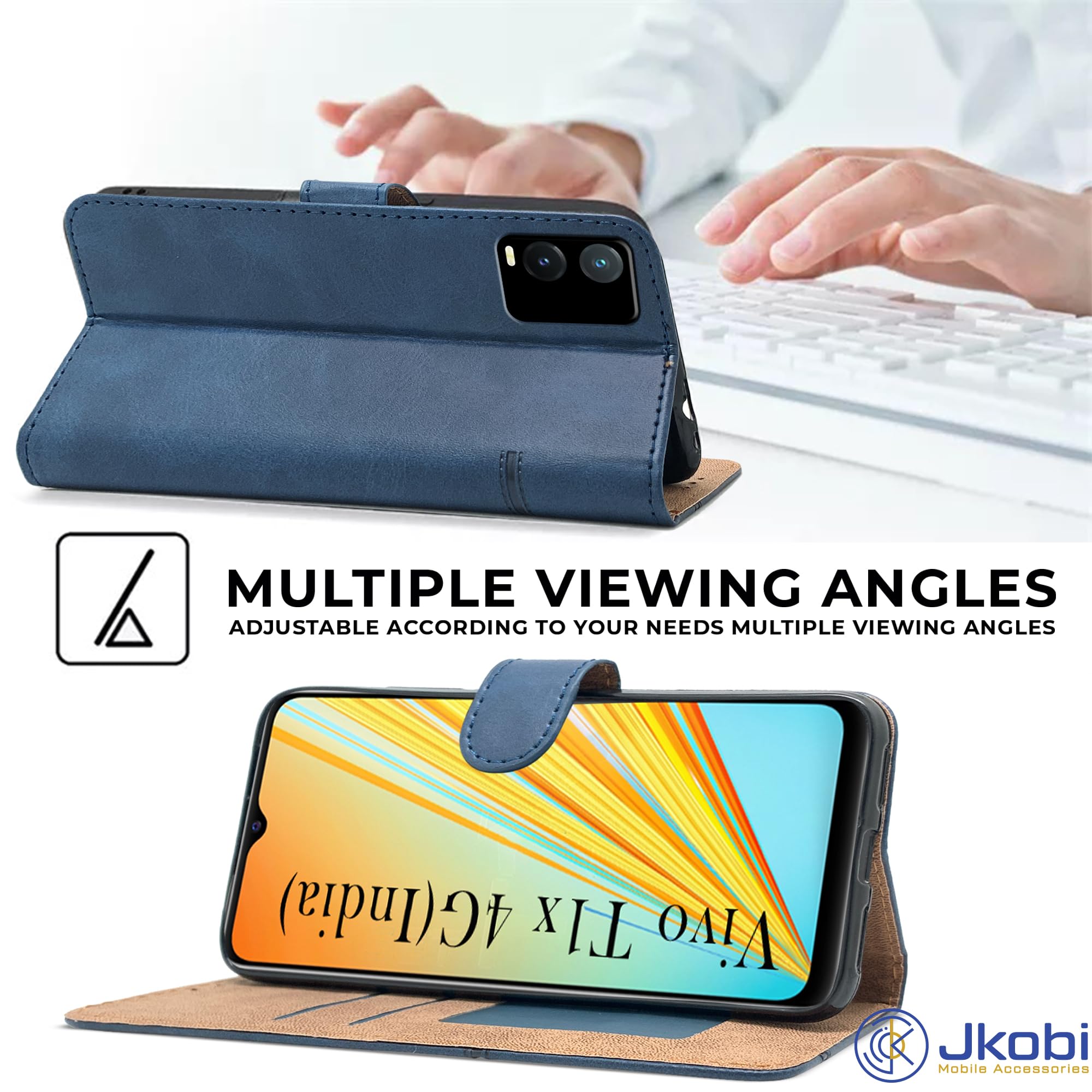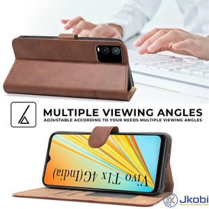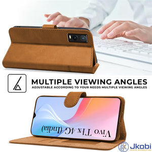 For Vivo T1x 4G Flip Cover Case ( Stitched Leather with Magnetic Closure)