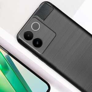 For Vivo T2 Pro Back Cover Case ( Hybrid Armor Case | Carbon Fiber Shockproof | Soft and Flexible | Black )