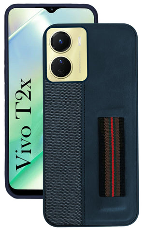 For Vivo T2x Back Cover Case (Professional PU Leather | Strip Chain Holder Socket)