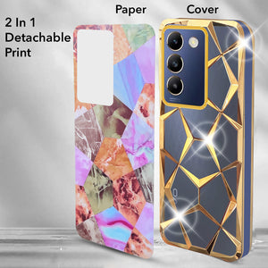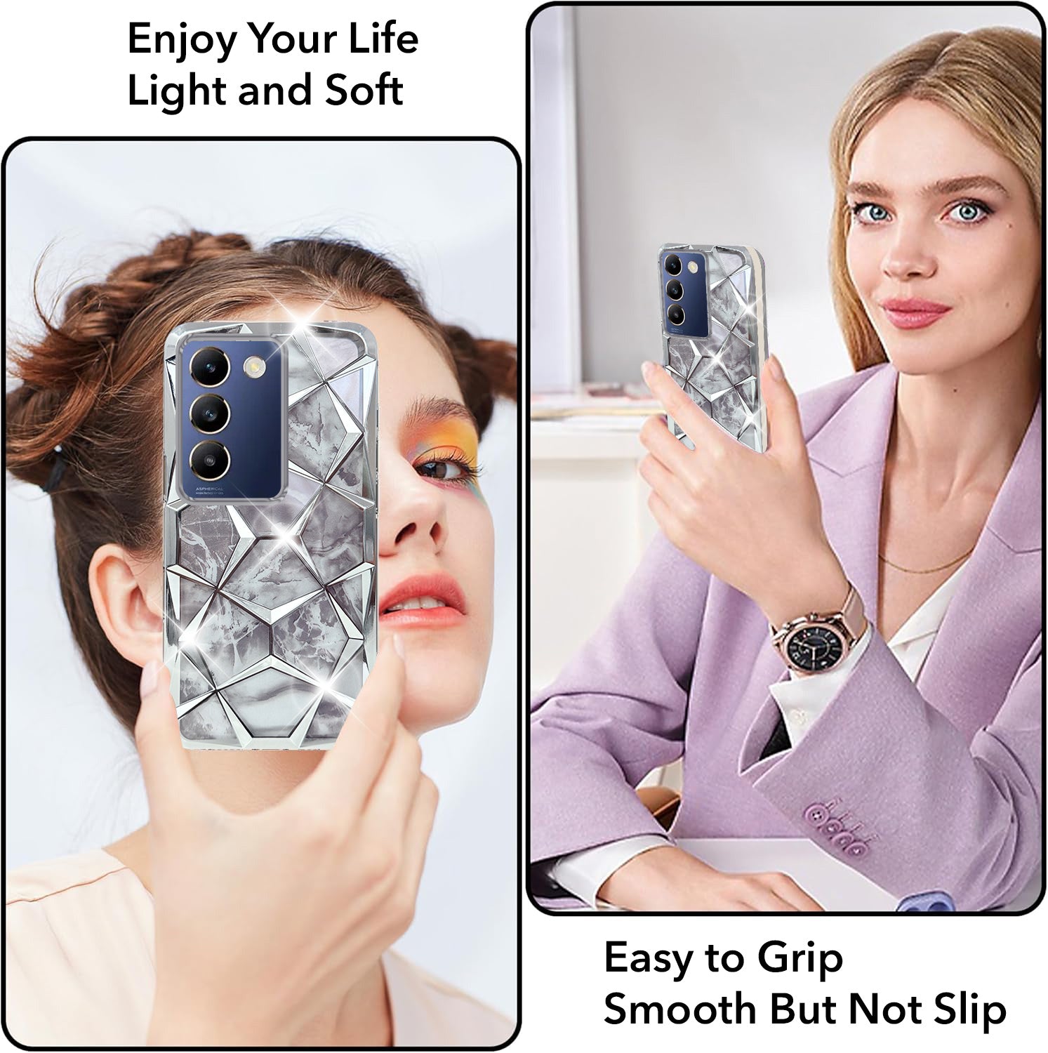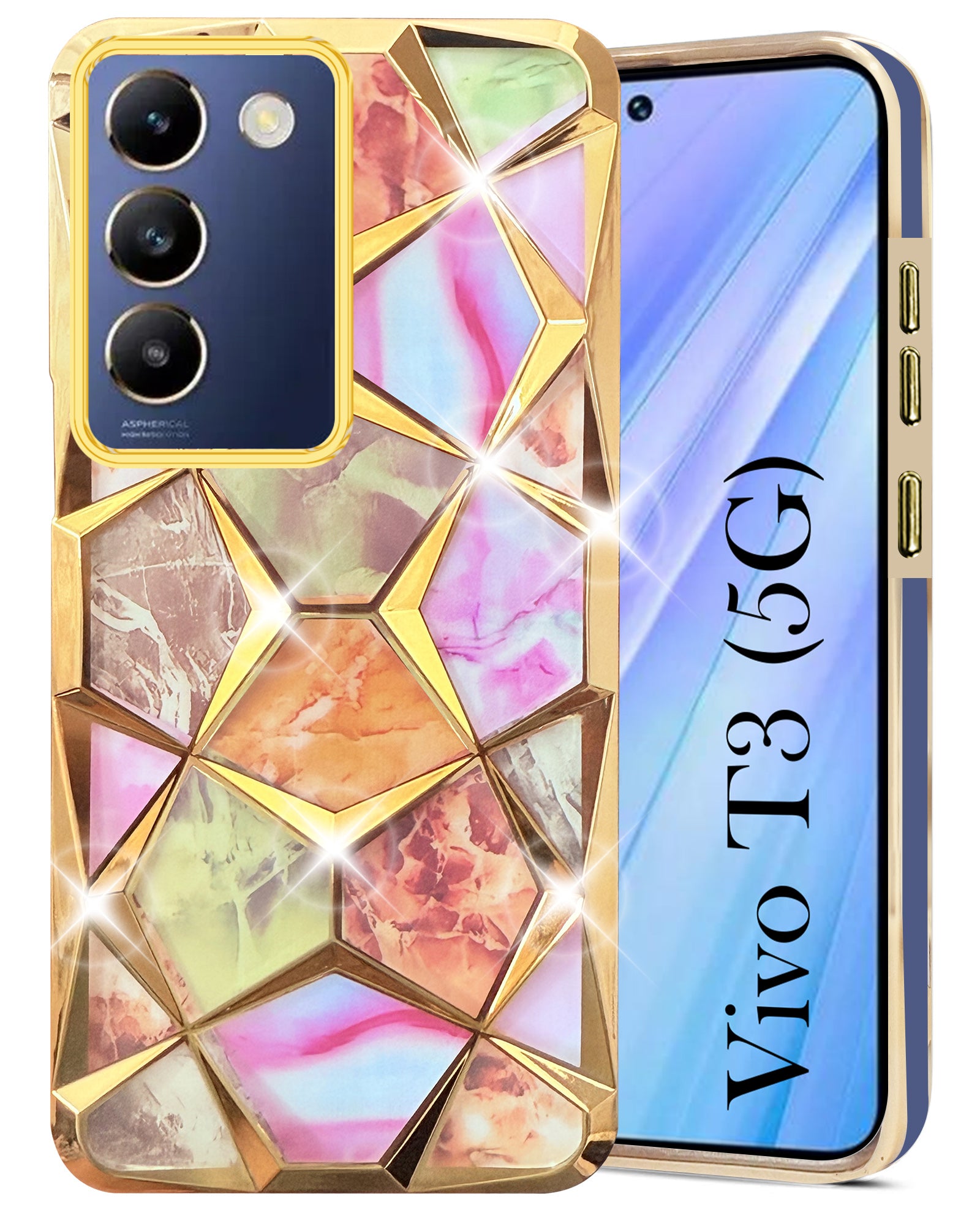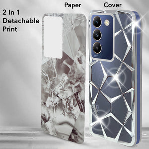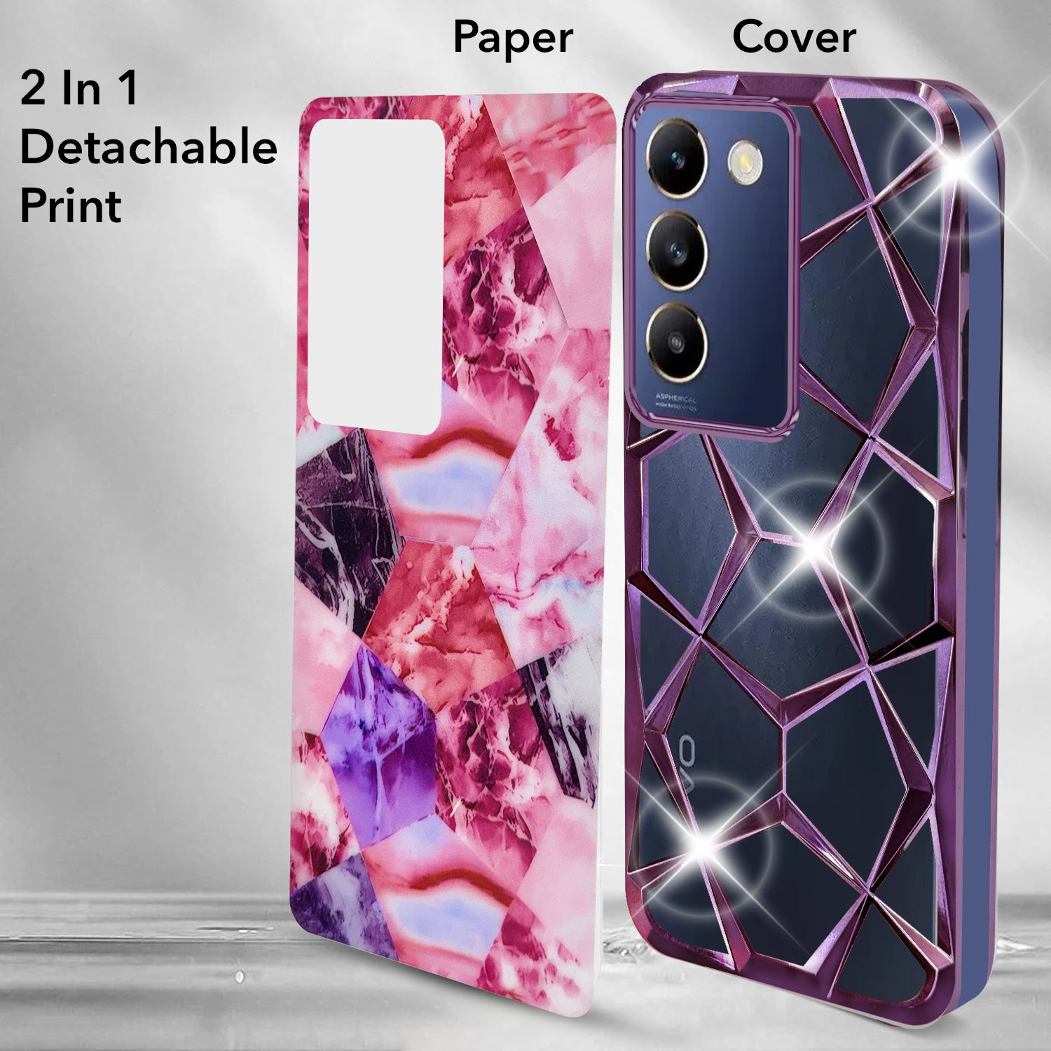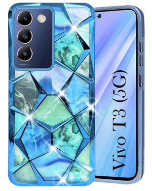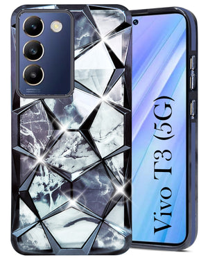 For Vivo T3 5G Back Cover Case (Dual Design Glitter Sparkle and Detachable Diamond Print Case | Soft and Flexible)