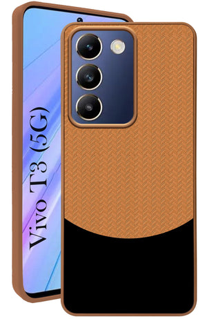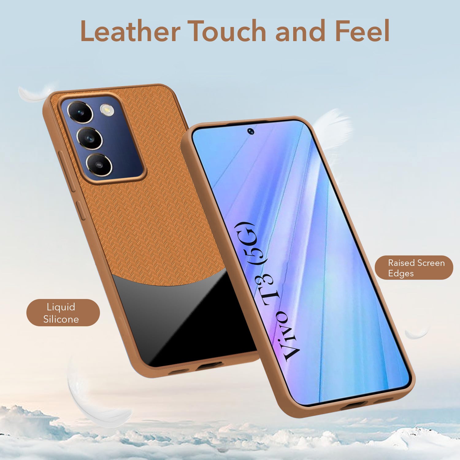For Vivo T3 5G Back Cover Case (Elegant PU Leather Finish | Premium Minimalist Professional | Camera Protection Bump)