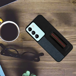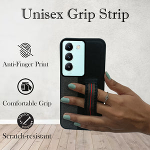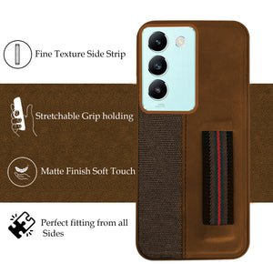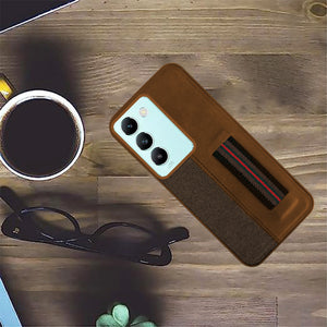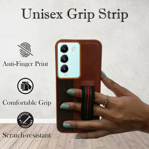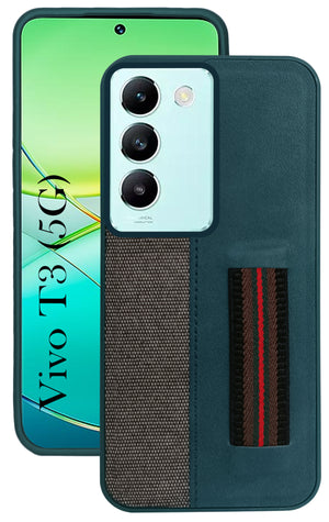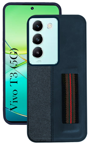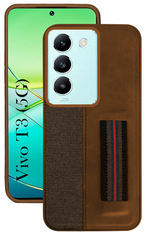 For Vivo T3 5G Back Cover Case ( Professional PU Leather | Strip Chain Holder Socket)