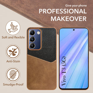 For Vivo T3 Back Cover Case (Dual PU Leather Stitch | Professional Minimalist | Soft and Flexible)