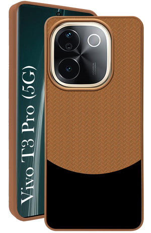 For Vivo T3 Pro Back Cover Case (Elegant PU Leather Finish | Premium Minimalist Professional | Camera Protection Bump)