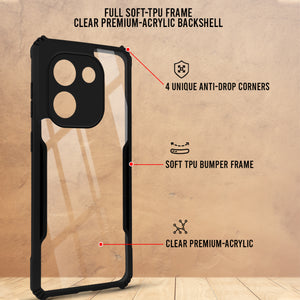 For Vivo T3 Pro Back Cover Case (Shockproof with Polycarbonate Clear Panel)