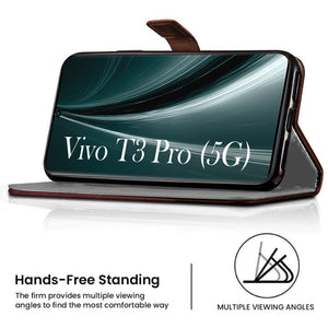 For Vivo T3 Pro Flip Cover Case ( Professional Dual Leather Wallet with Magnetic Closure)