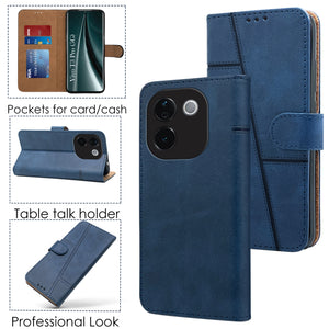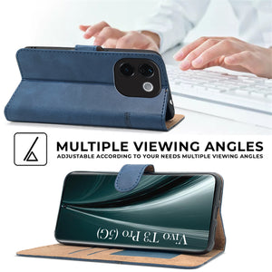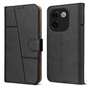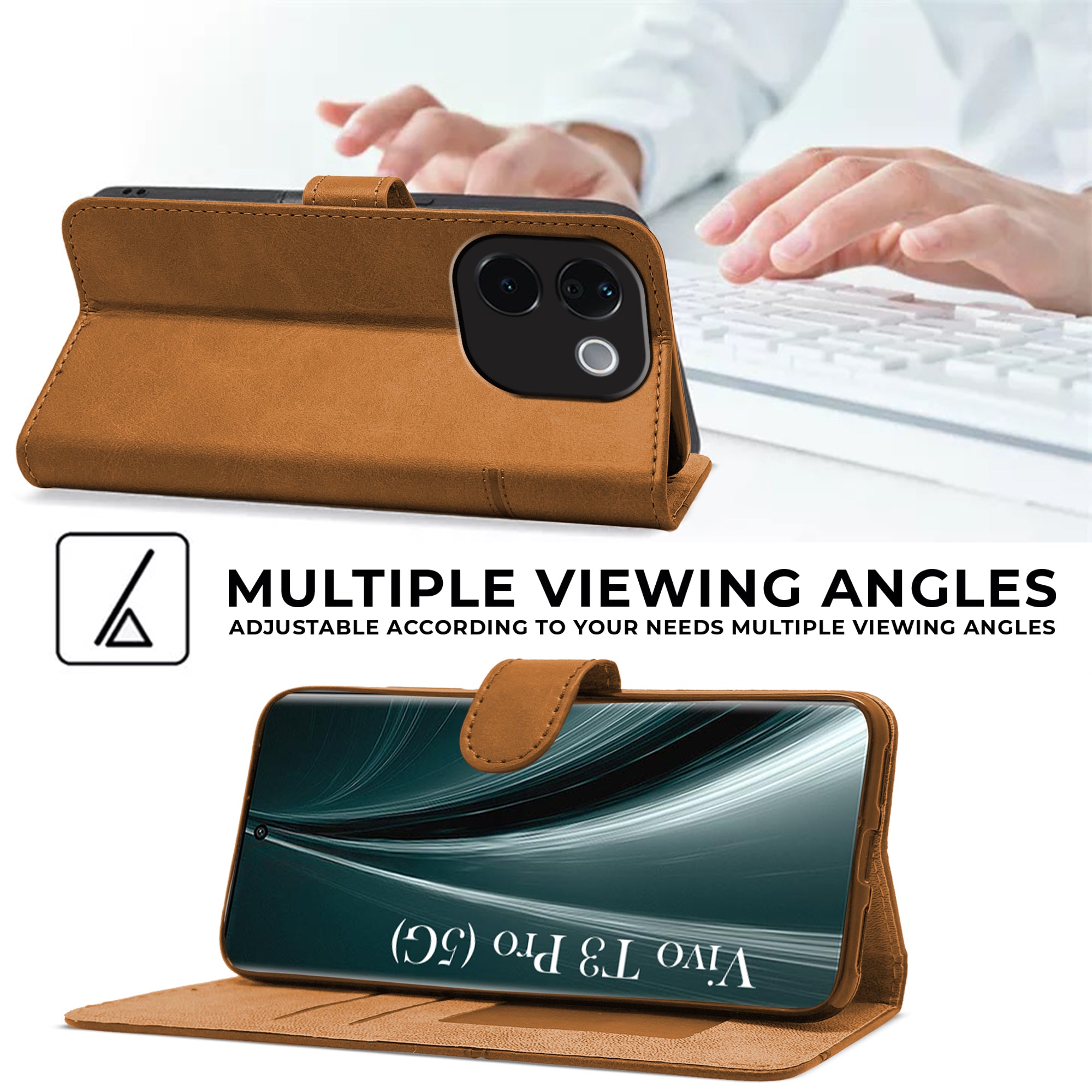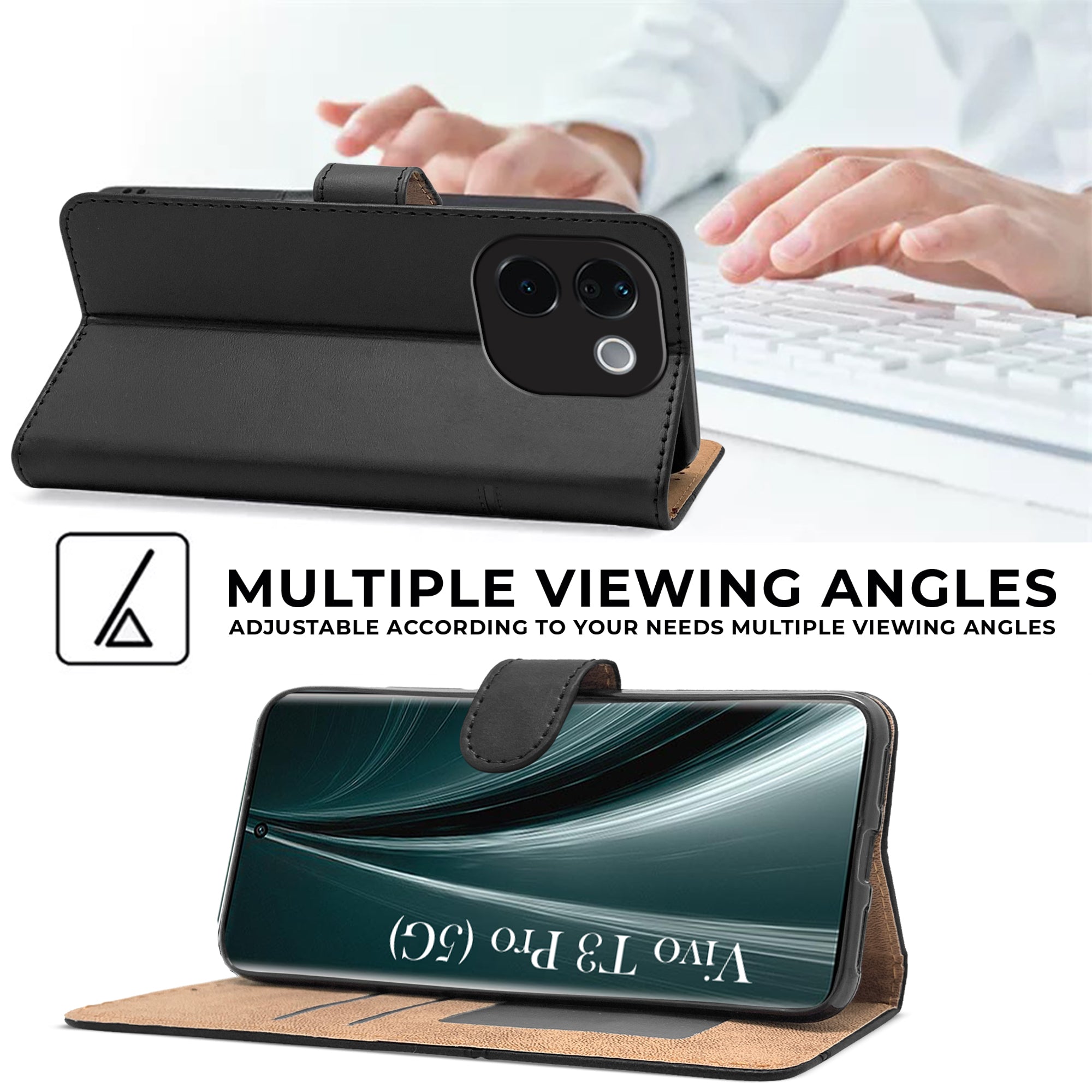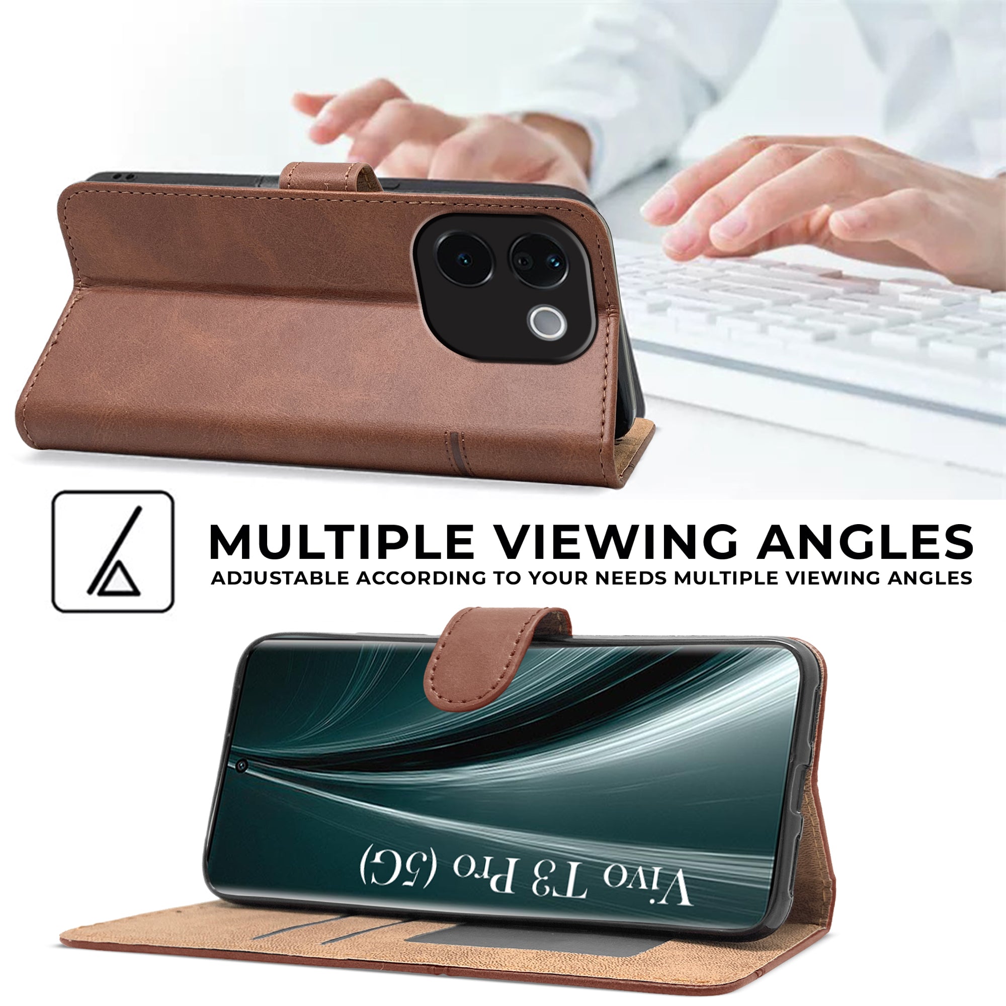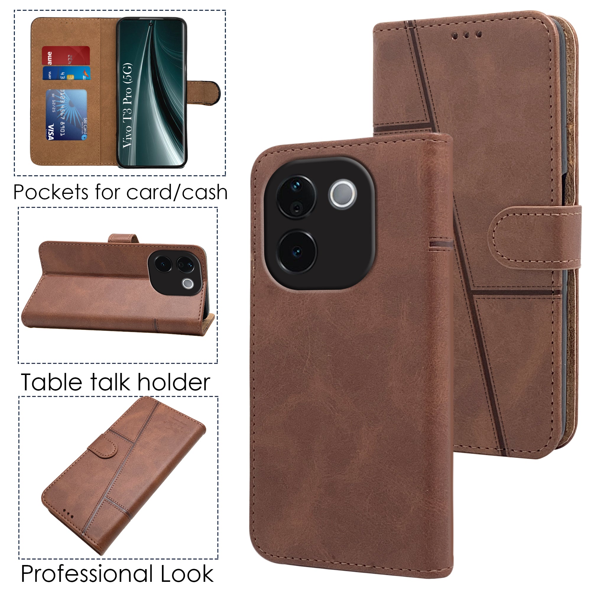 For Vivo T3 Pro Flip Cover Case (Stitched Leather with Magnetic Closure)