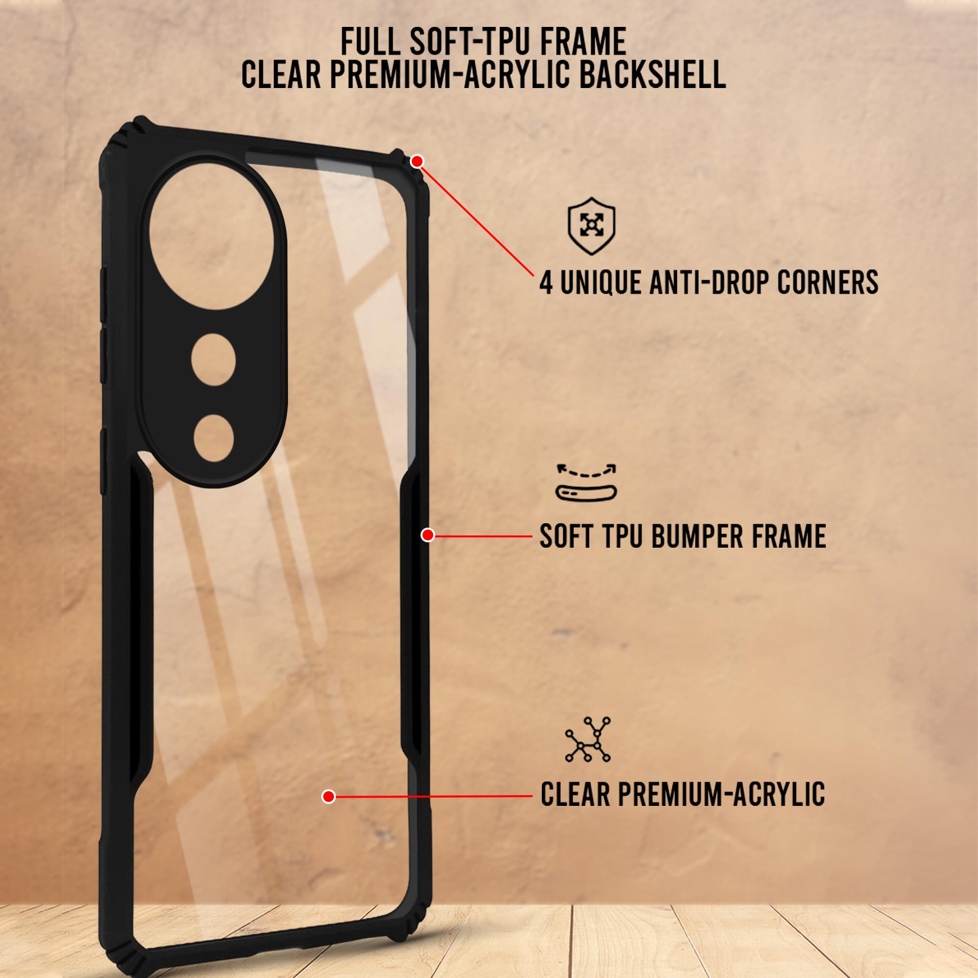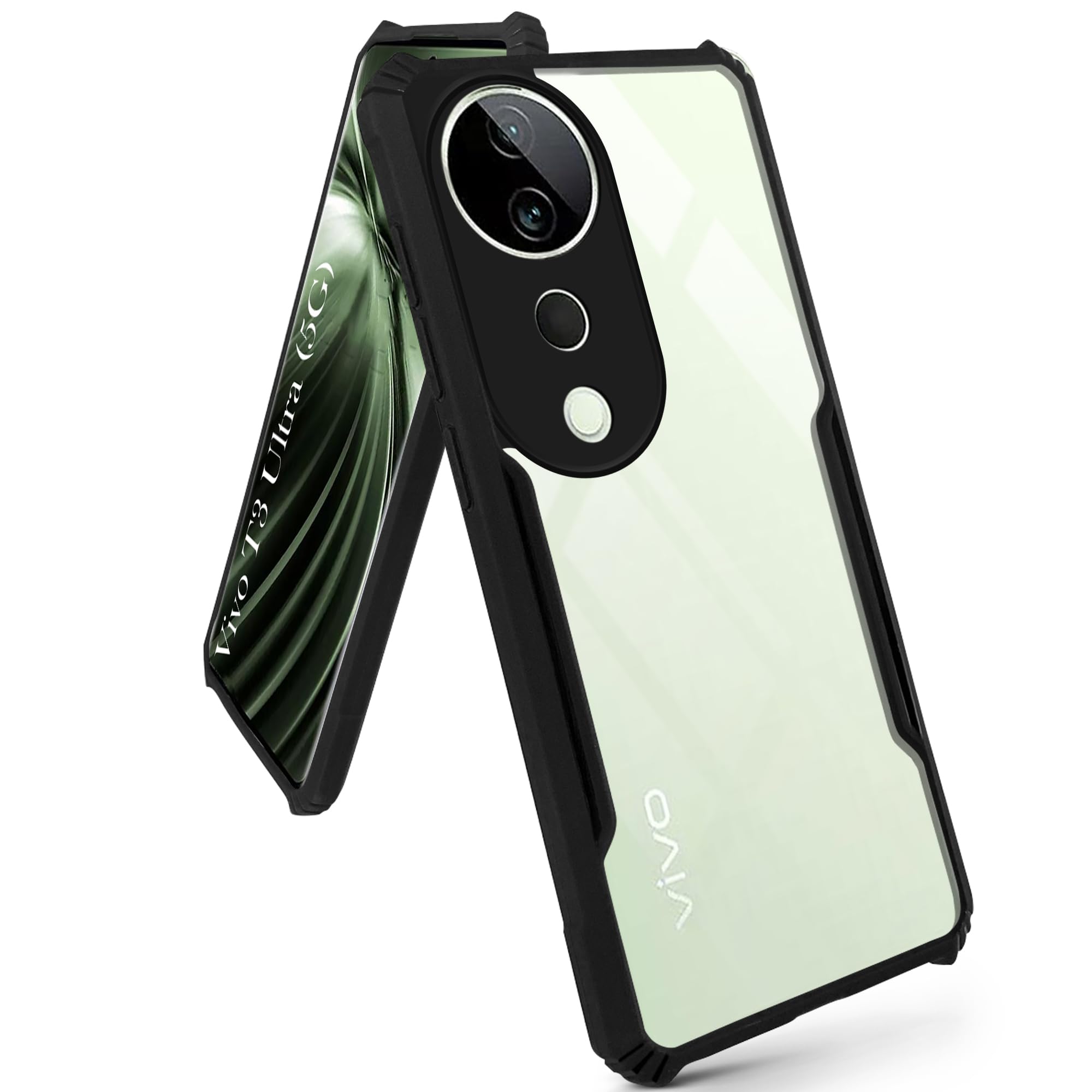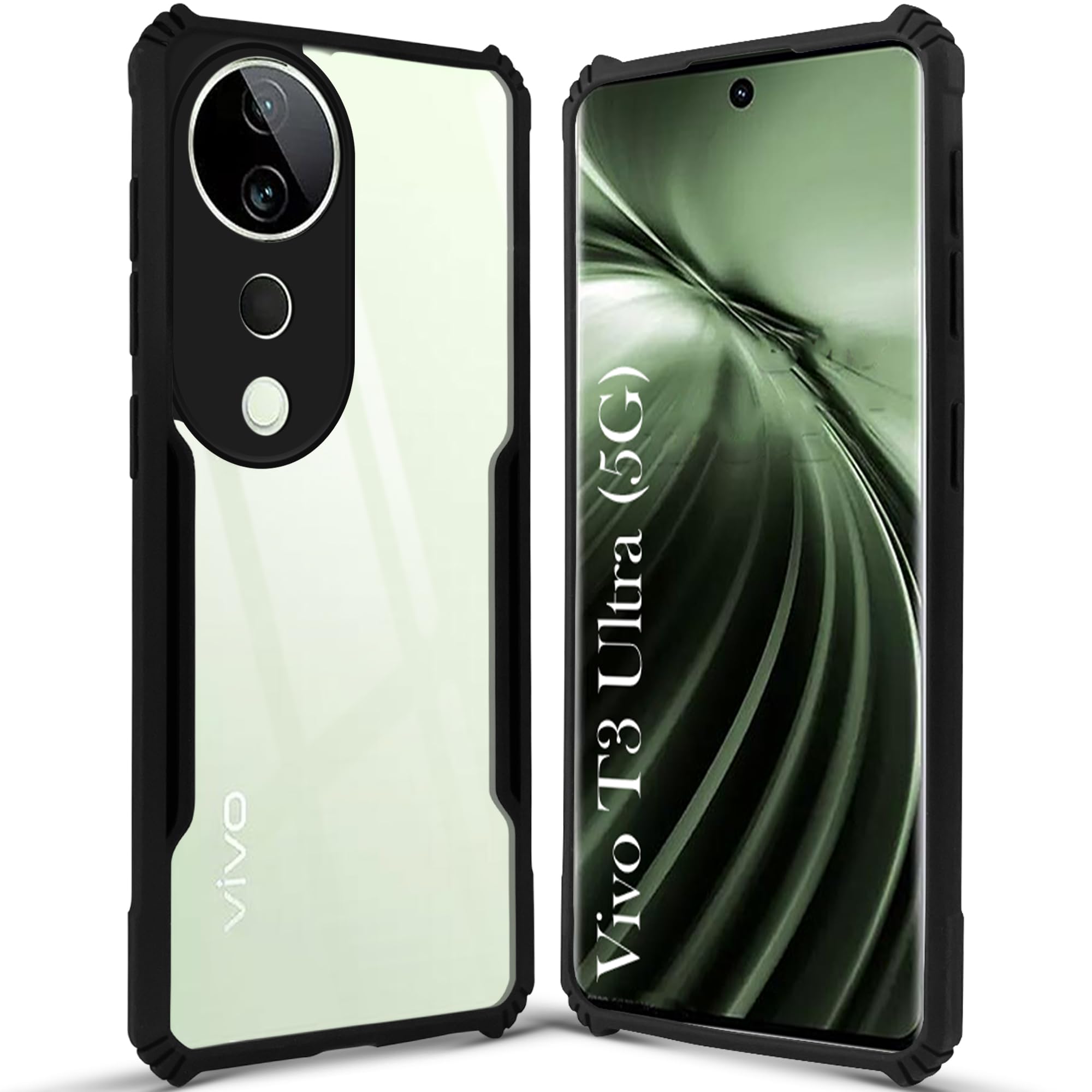 For Vivo T3 Ultra Back Cover Case ( Shockproof with Polycarbonate Clear Panel | Professional Black)