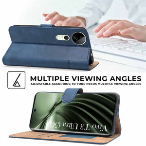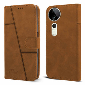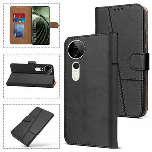 For Vivo T3 Ultra Flip Cover Case( Stitched Leather with Magnetic Closure)