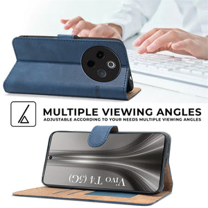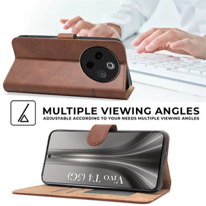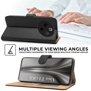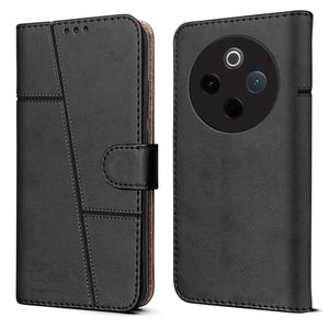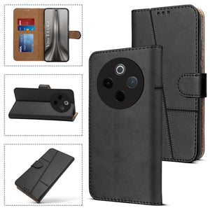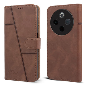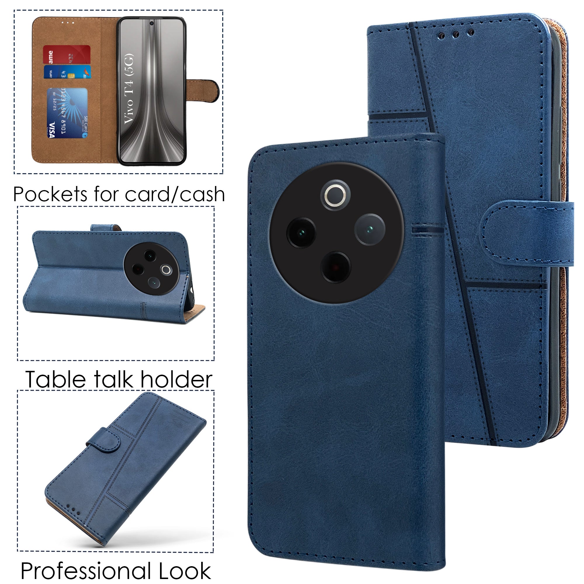 For Vivo T4 Flip Cover Case (Stitched Leather with Magnetic Closure)