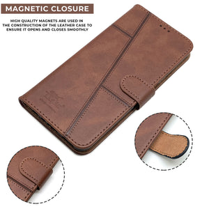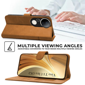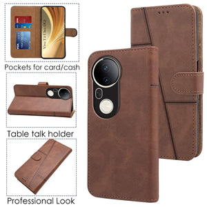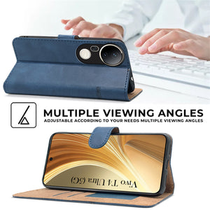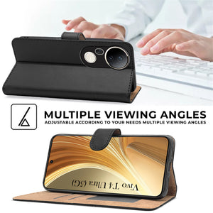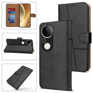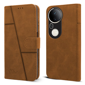 For Vivo T4 Ultra Flip Cover Case (Stitched Leather with Magnetic Closure)