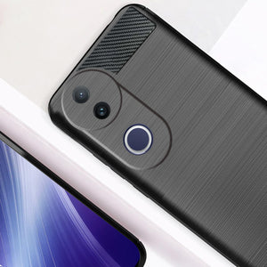 For Vivo T4R Back Cover Case ( Hybrid Armor Case | Carbon Fiber Shockproof | Soft and Flexible | Black )