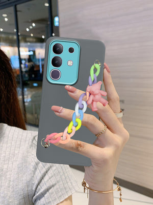 ForVivo T4x | Vivo Y31 Pro Back Cover Case ( Wrist Hanging Chain | Teddy Bracelet Charms | Dual Color Matte Finish | Full Camera Protection | Sleek and Professional)