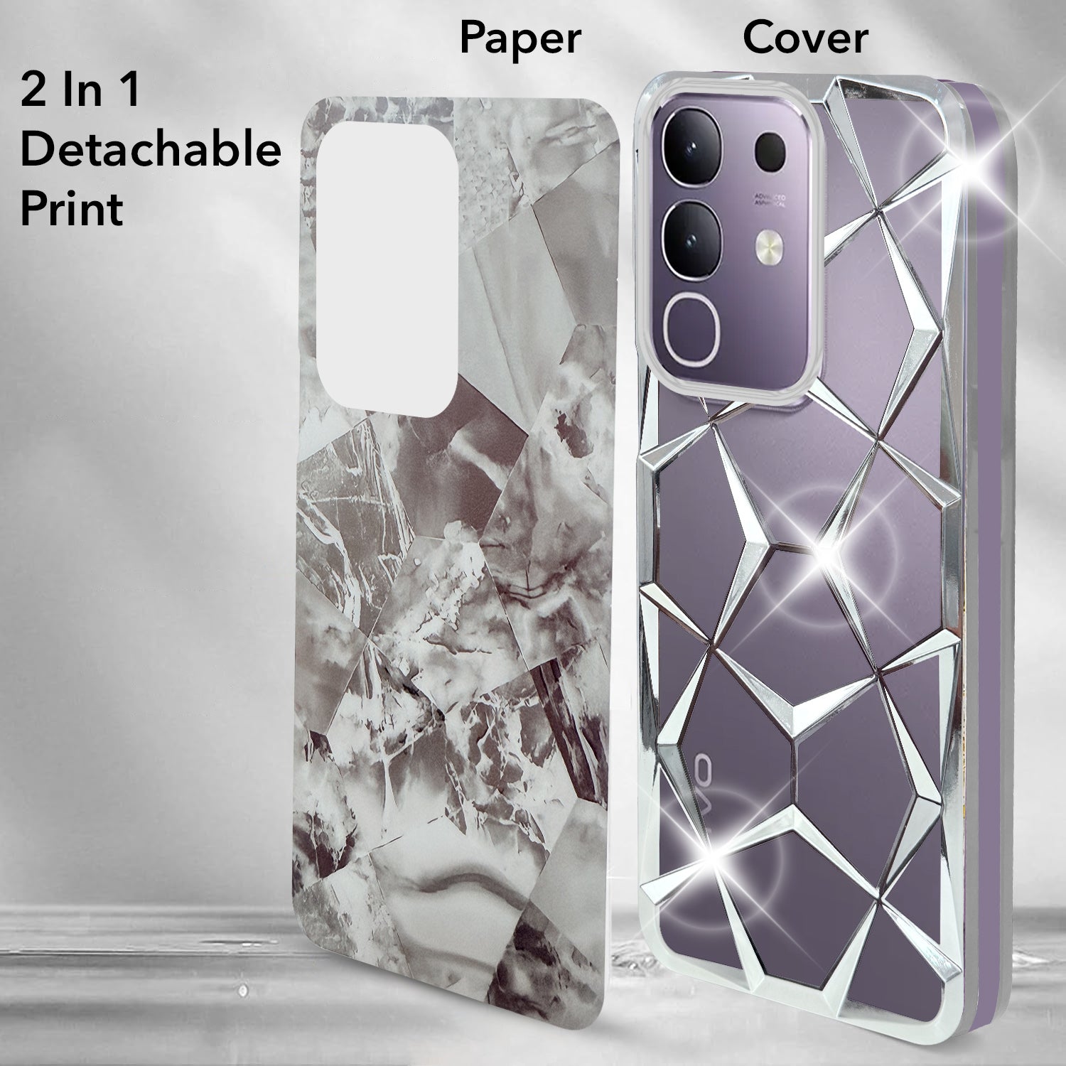 For Vivo T4x | Vivo Y31 Pro For Back Cover Case (Dual Design Glitter Sparkle and Detachable Diamond Print Case | Soft and Flexible)