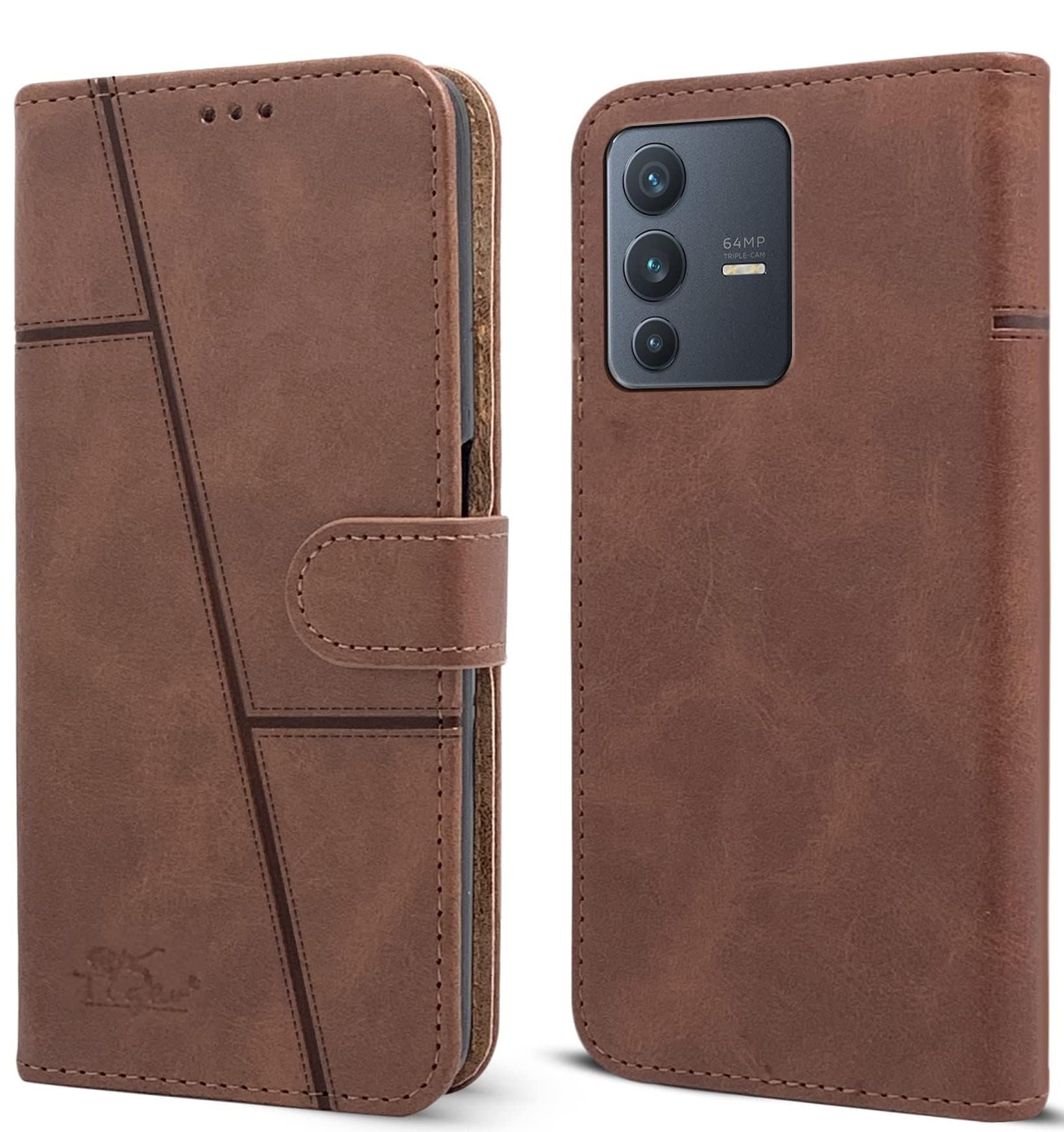 For Vivo V23 5G Flip Cover Case (Stitched with Magnetic Closure)