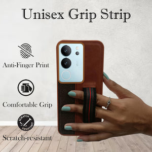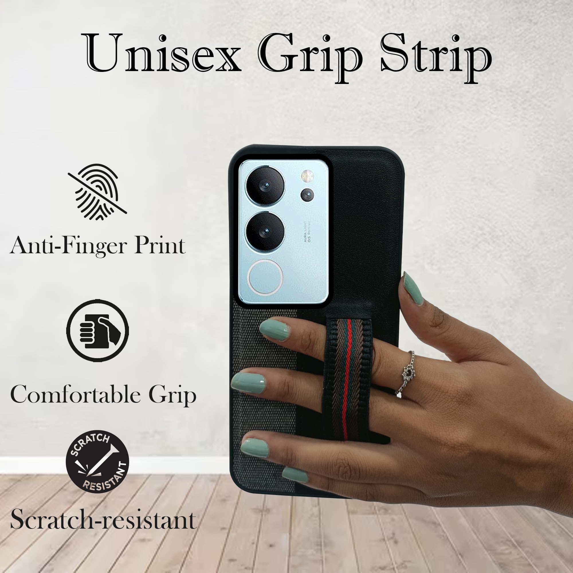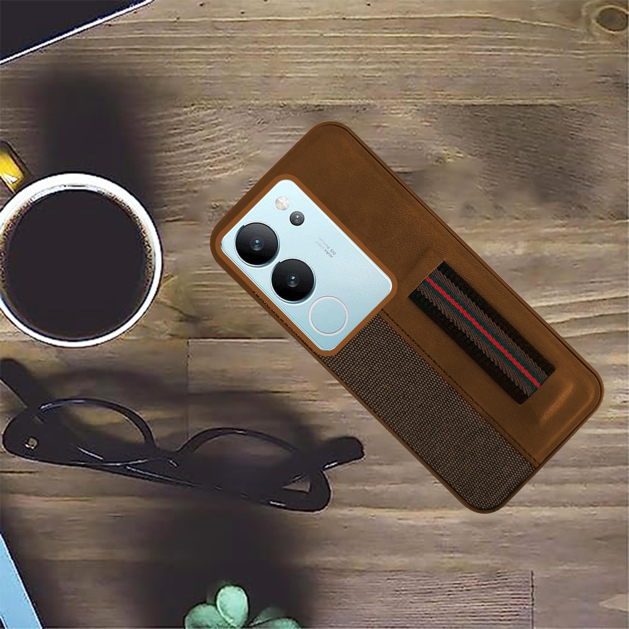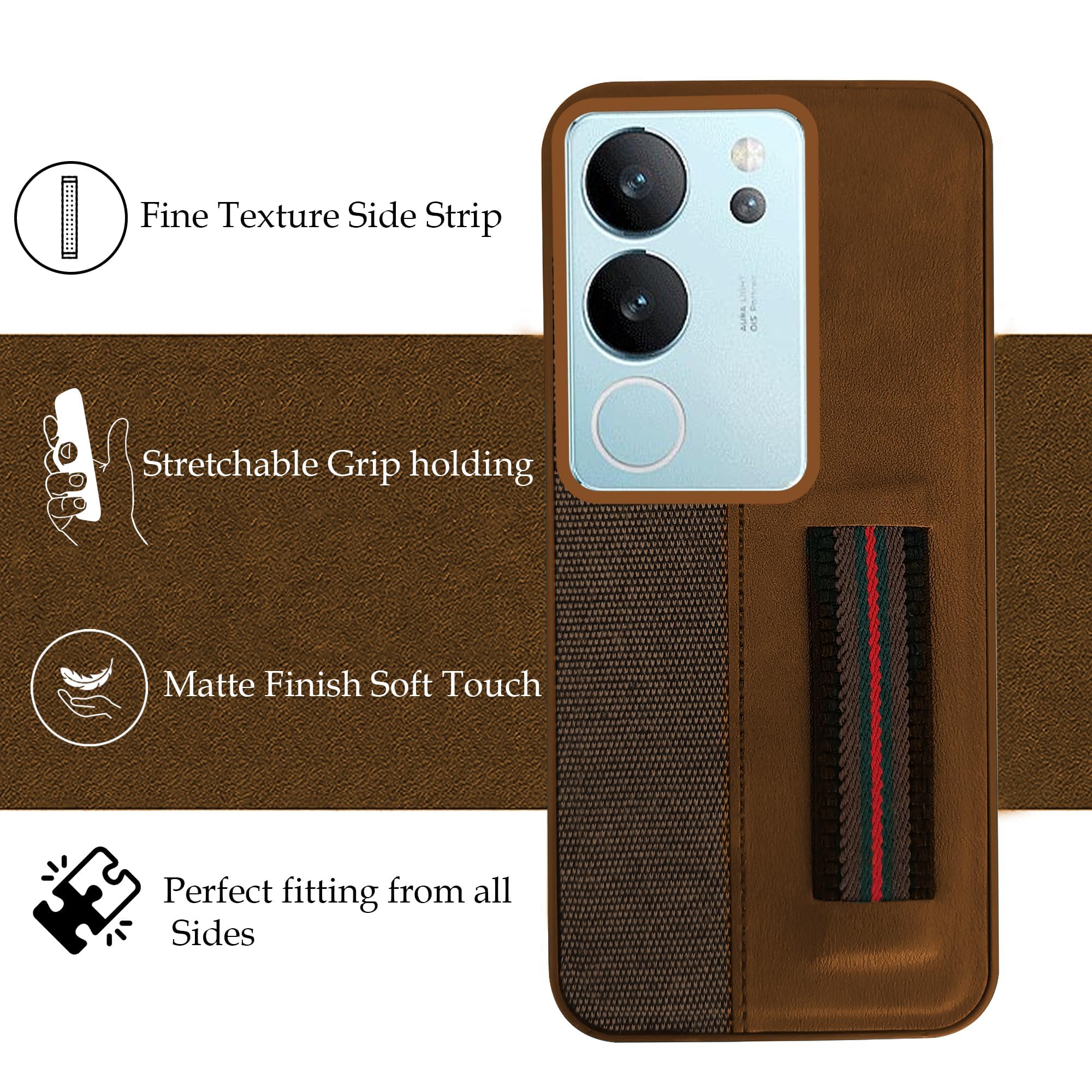 For Vivo V29 | Vivo V29 Pro 5G Back Cover Case (Professional PU Leather | Strip Chain Holder Socket)