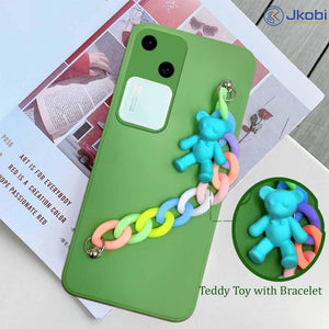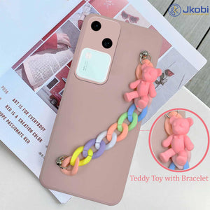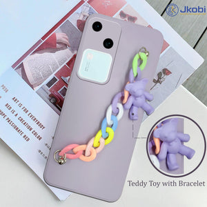 For Vivo V30 5G Back Cover Girls Case with Bracelet (Wrist Hanging Chain | Teddy Toy Cartoon)