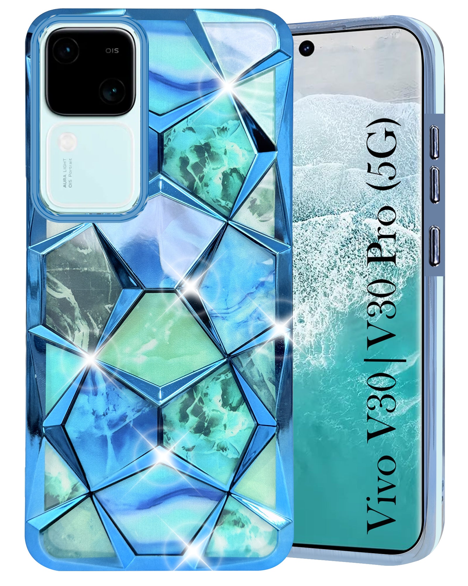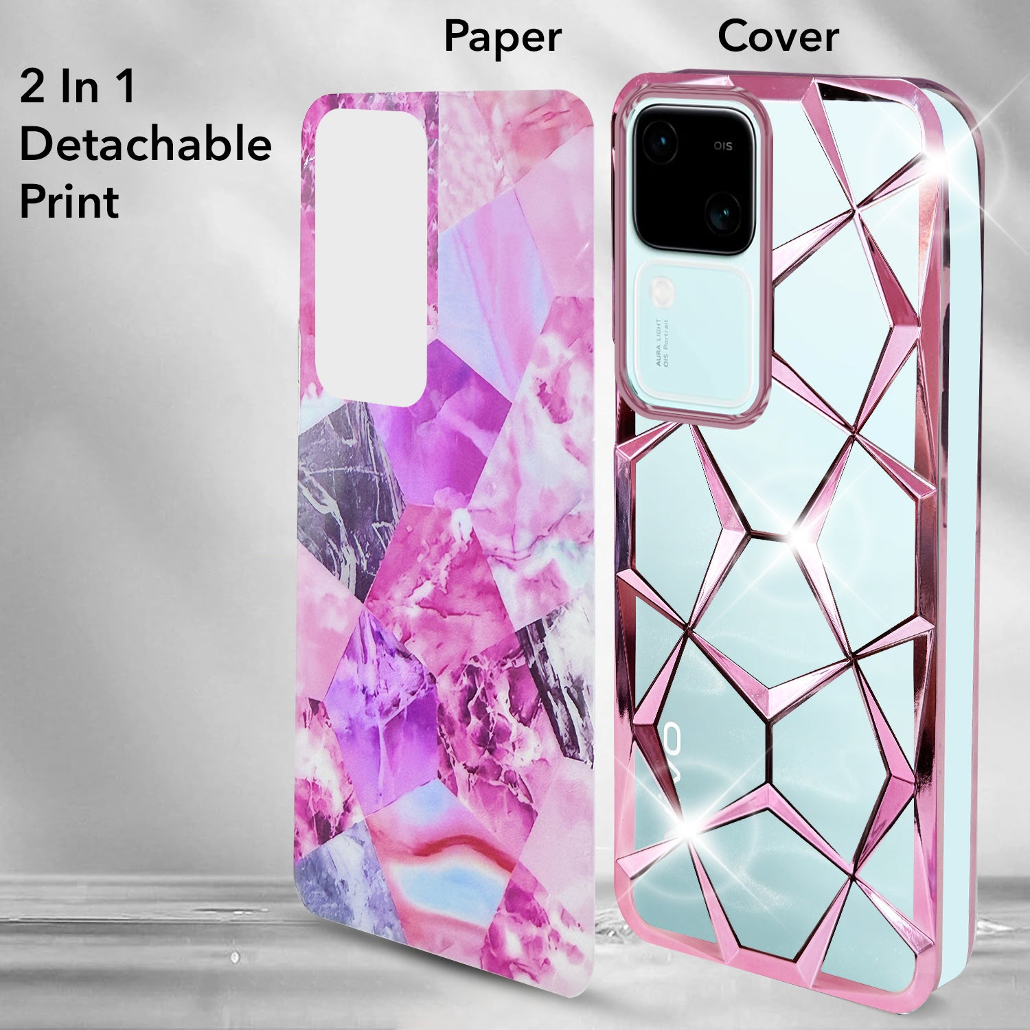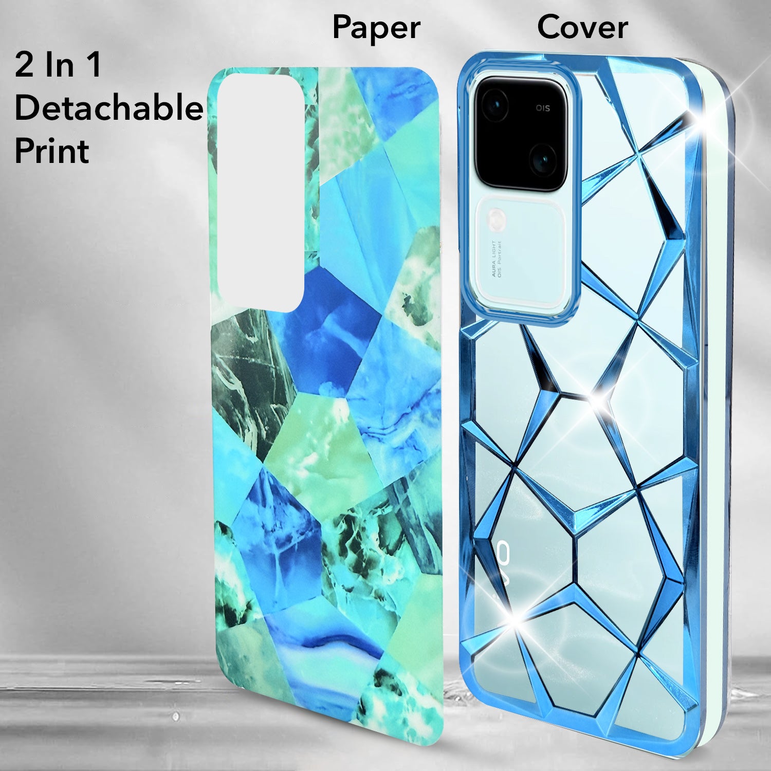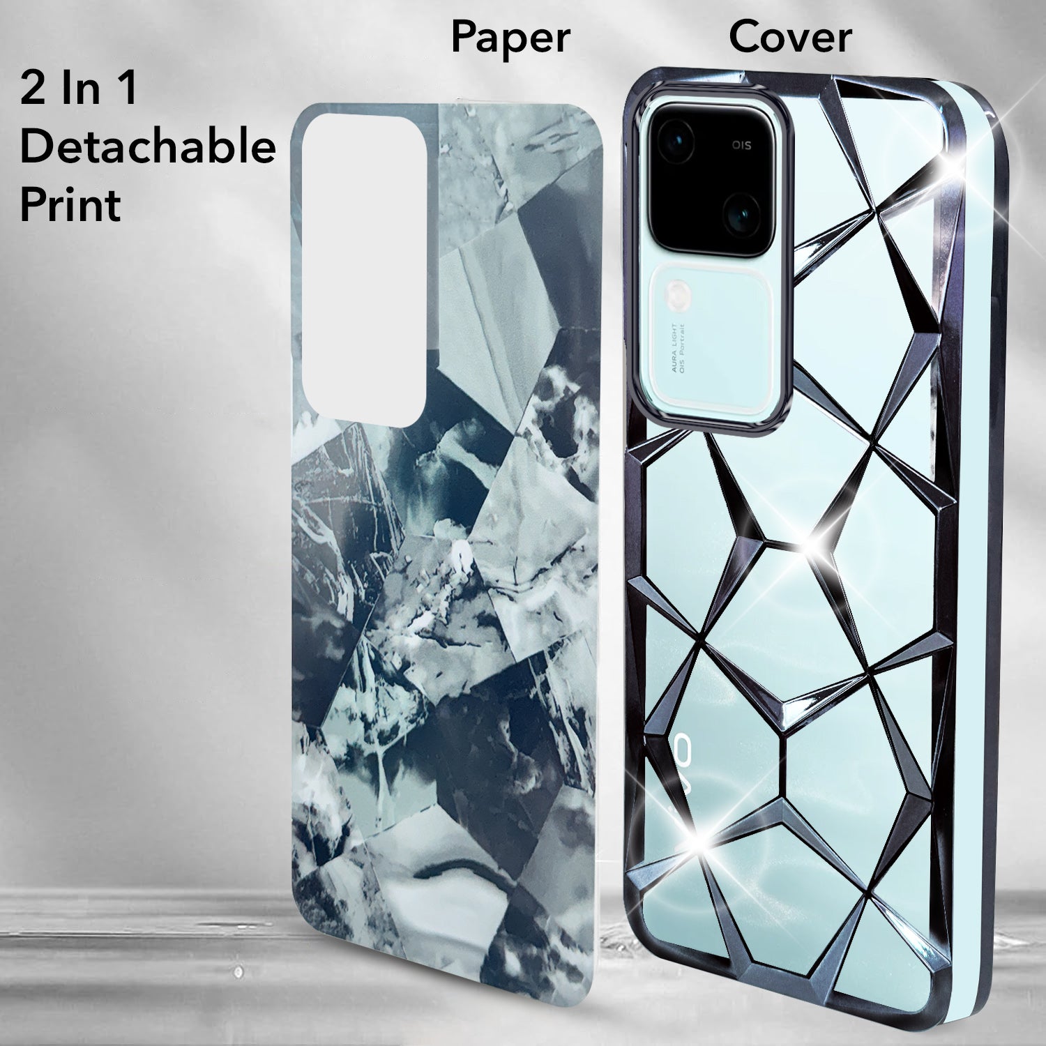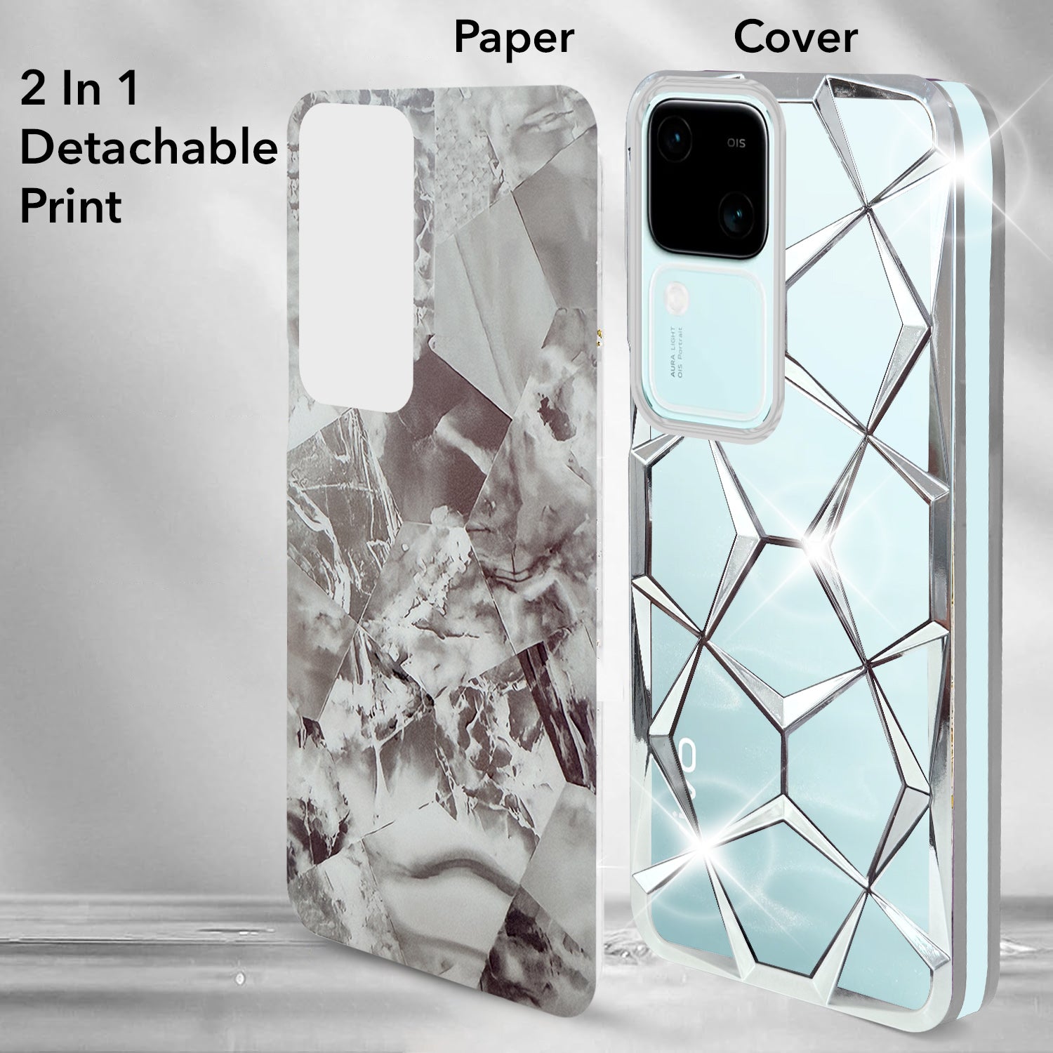 For Vivo V30 | Vivo V30 Pro 5G Back Cover Case (Dual Design Glitter Sparkle and Detachable Diamond Print Case | Soft and Flexible)