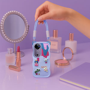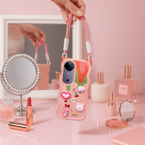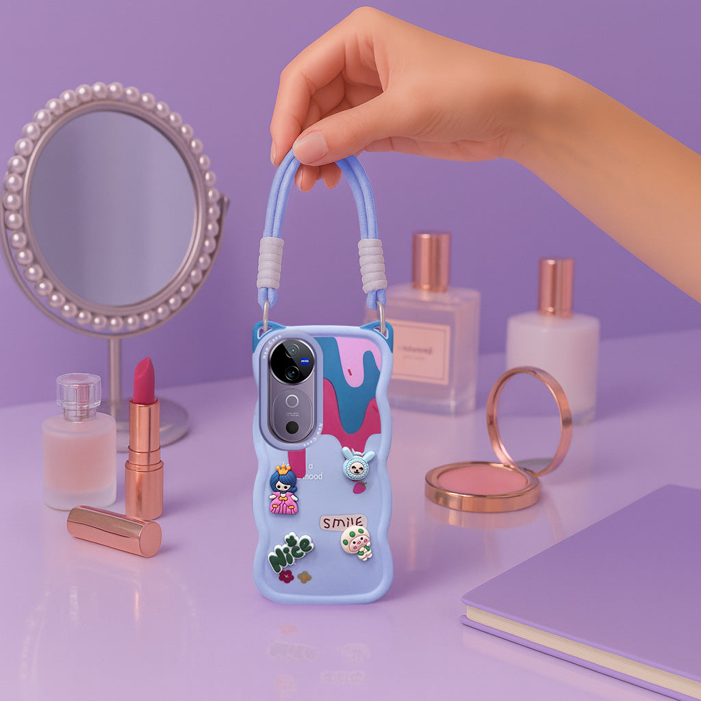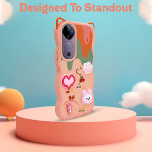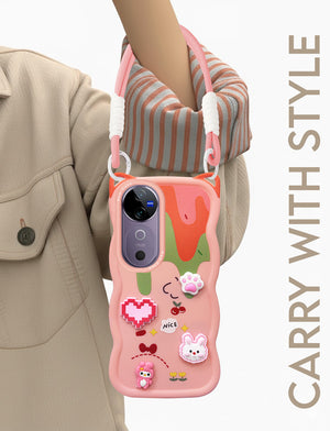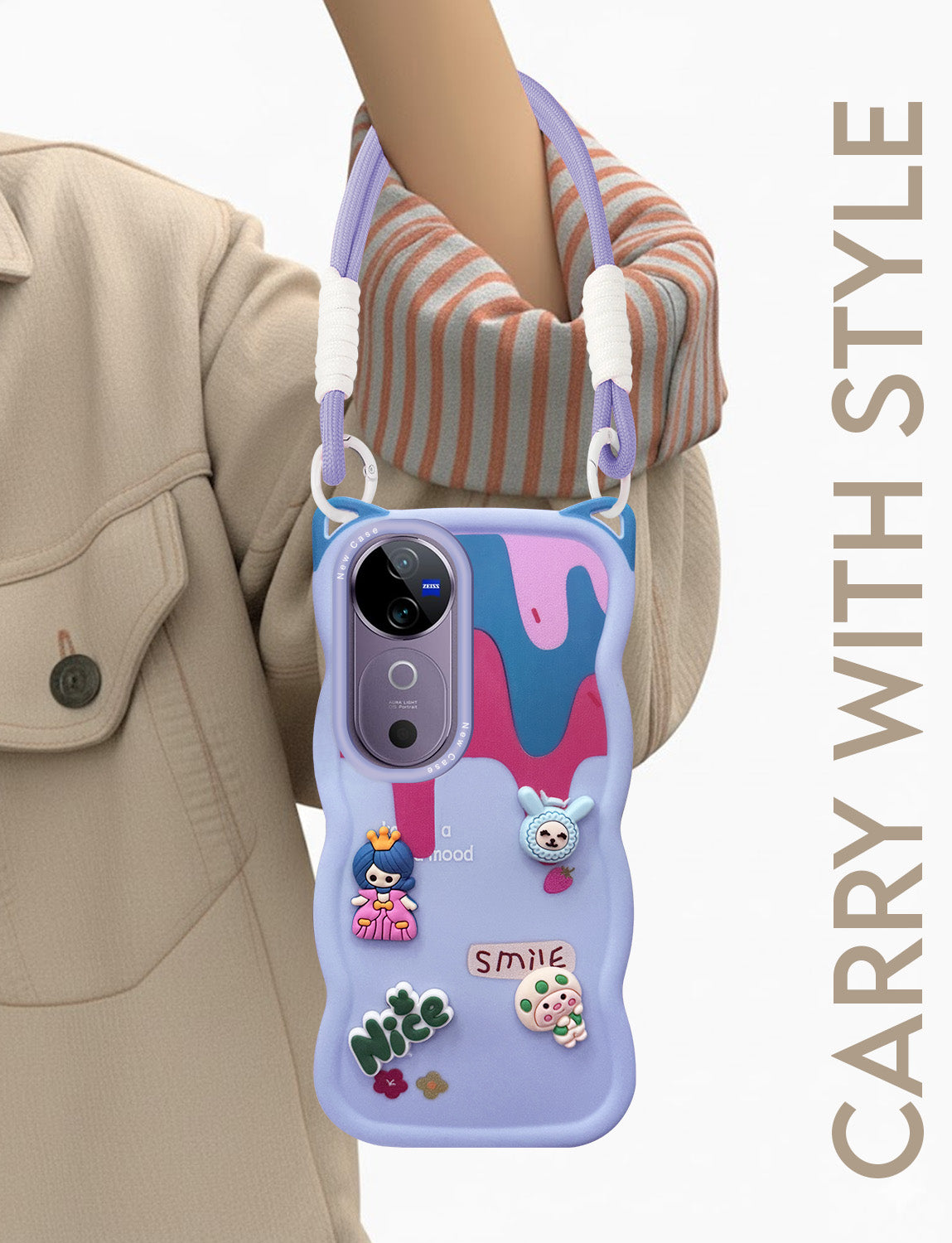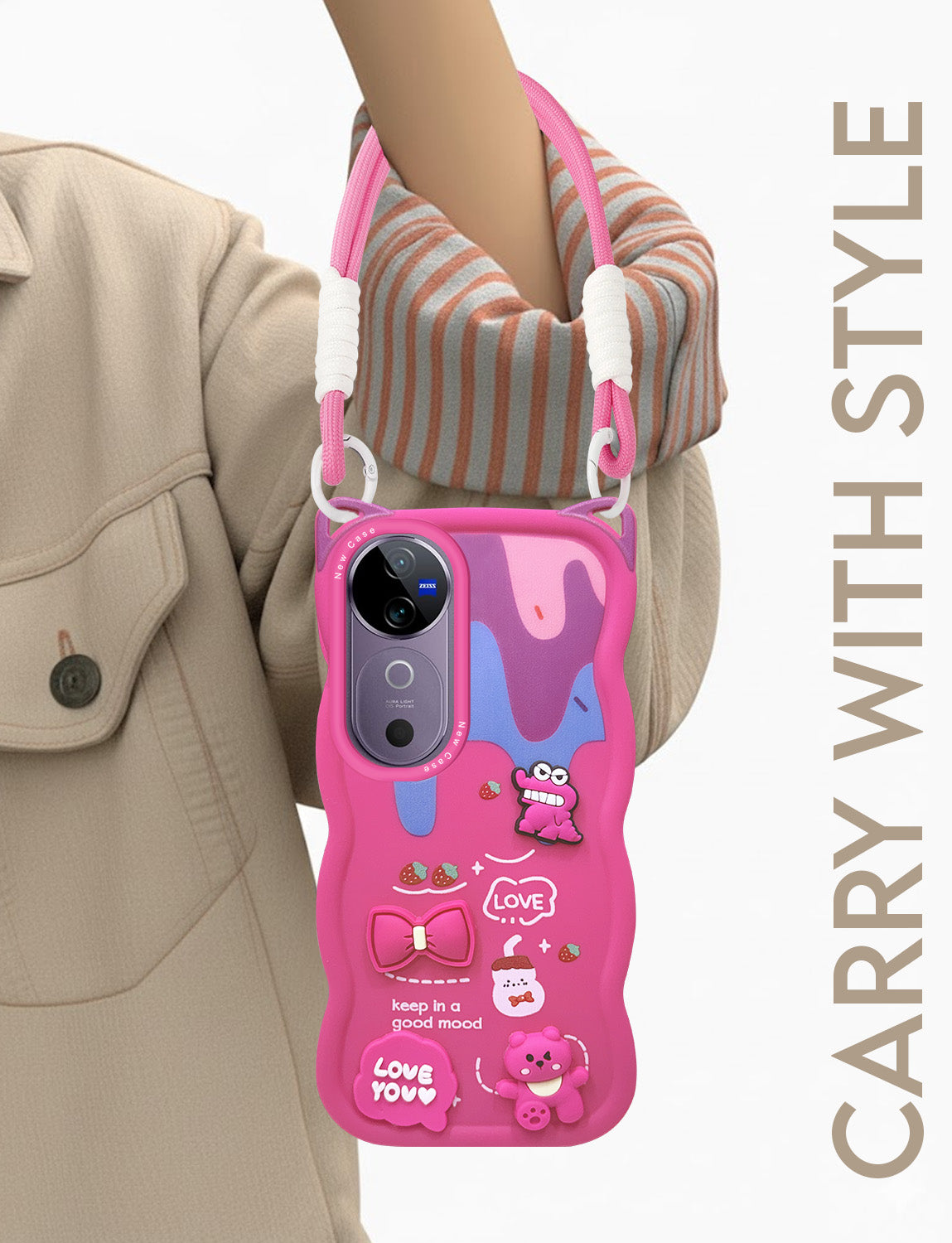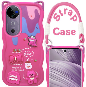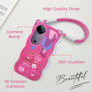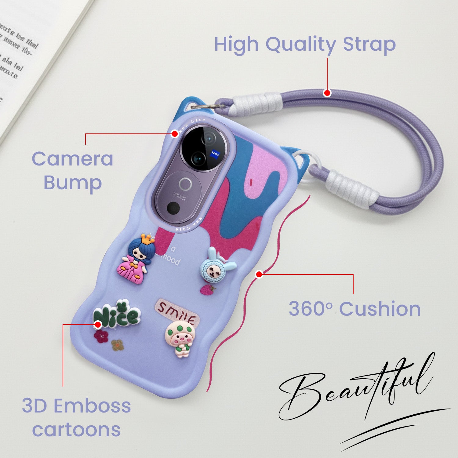 For Vivo V40 | Vivo V40 Pro 5G Back Case Cover Strap(3D embossed Figures | Strap Holder | 360* Soft Cushion with Camera Bump)
