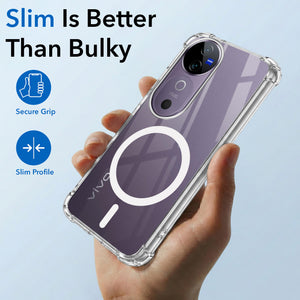 For Vivo V40 | Vivo V40 Pro 5G Back Cover Shockproof Crystal-Clear (Magsafe Wireless Support | Drop & Camera Protection | Hard Polycarbonate)