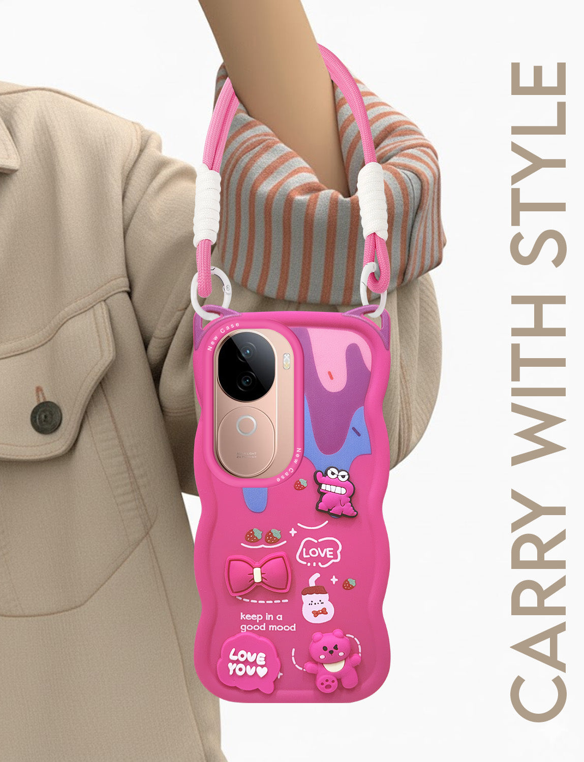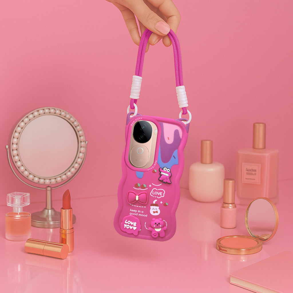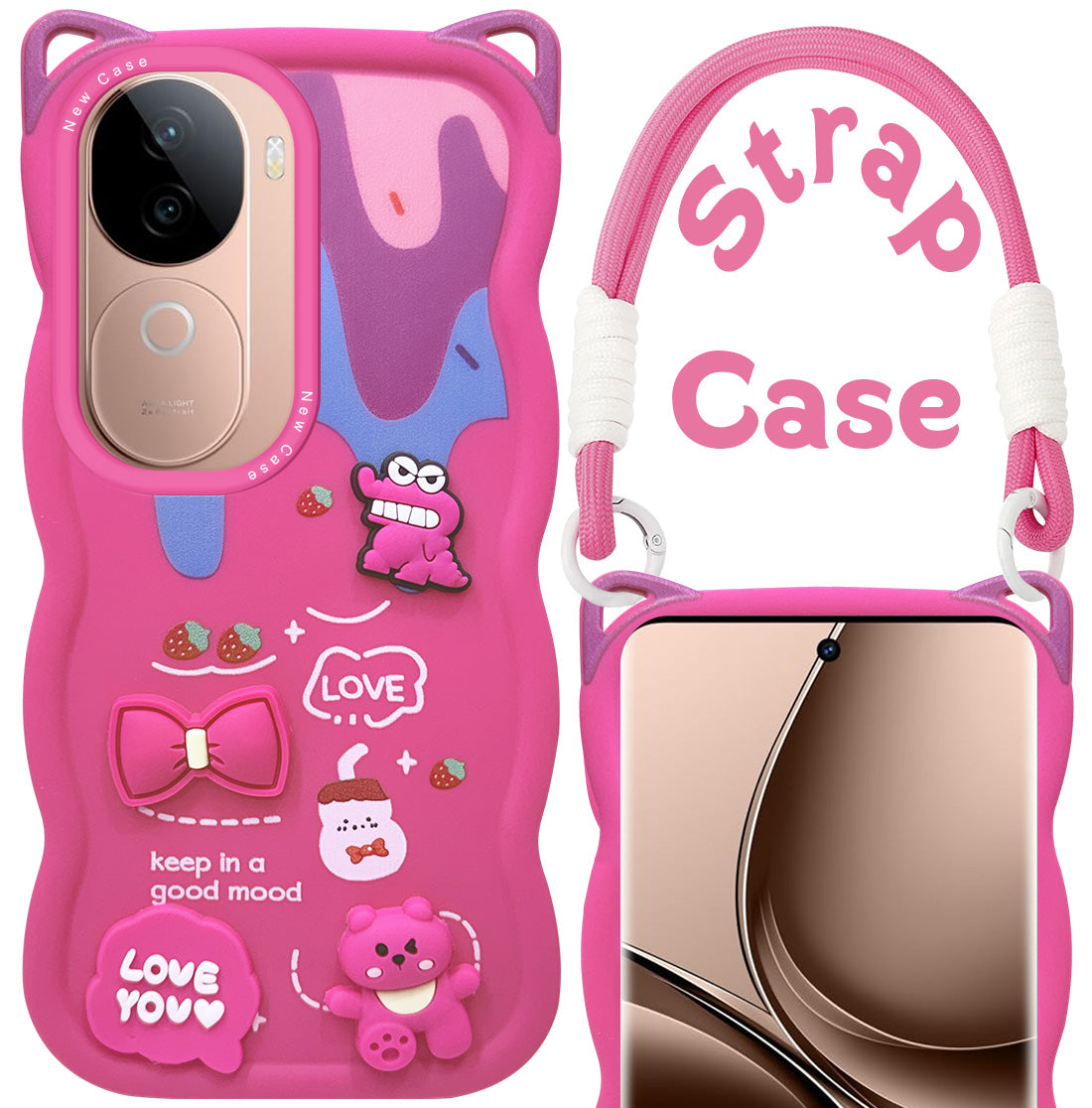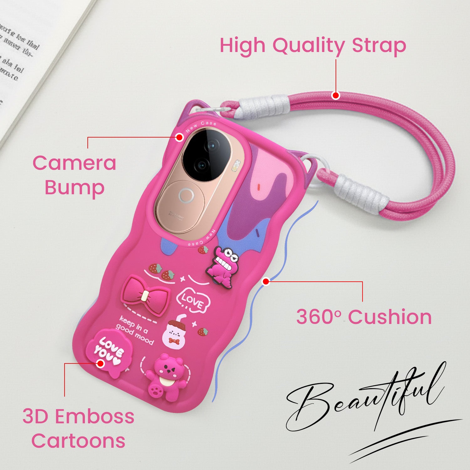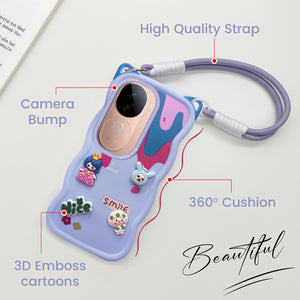 For Vivo V40e Back Case Cover Strap (3D embossed Figures | Strap Holder | 360* Soft Cushion with Camera Bump)