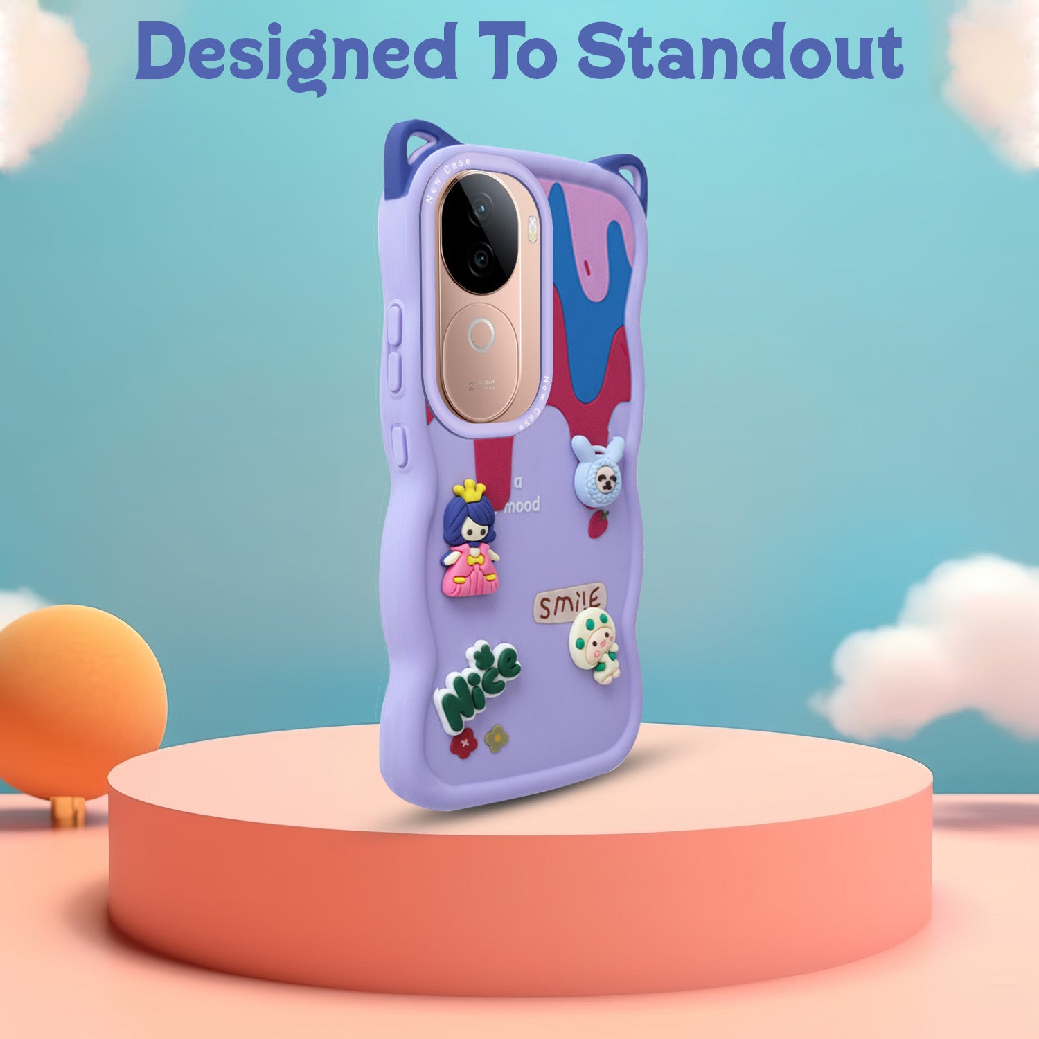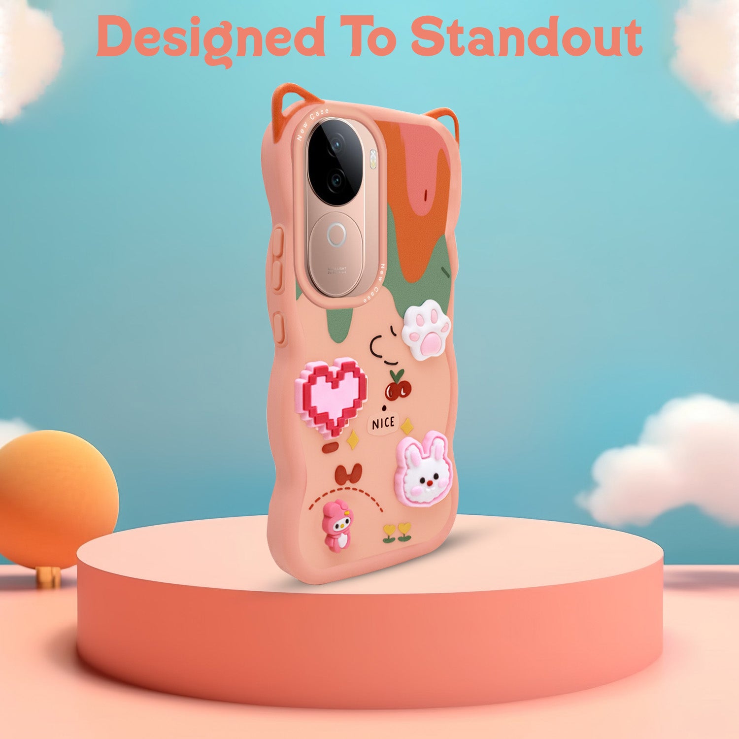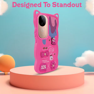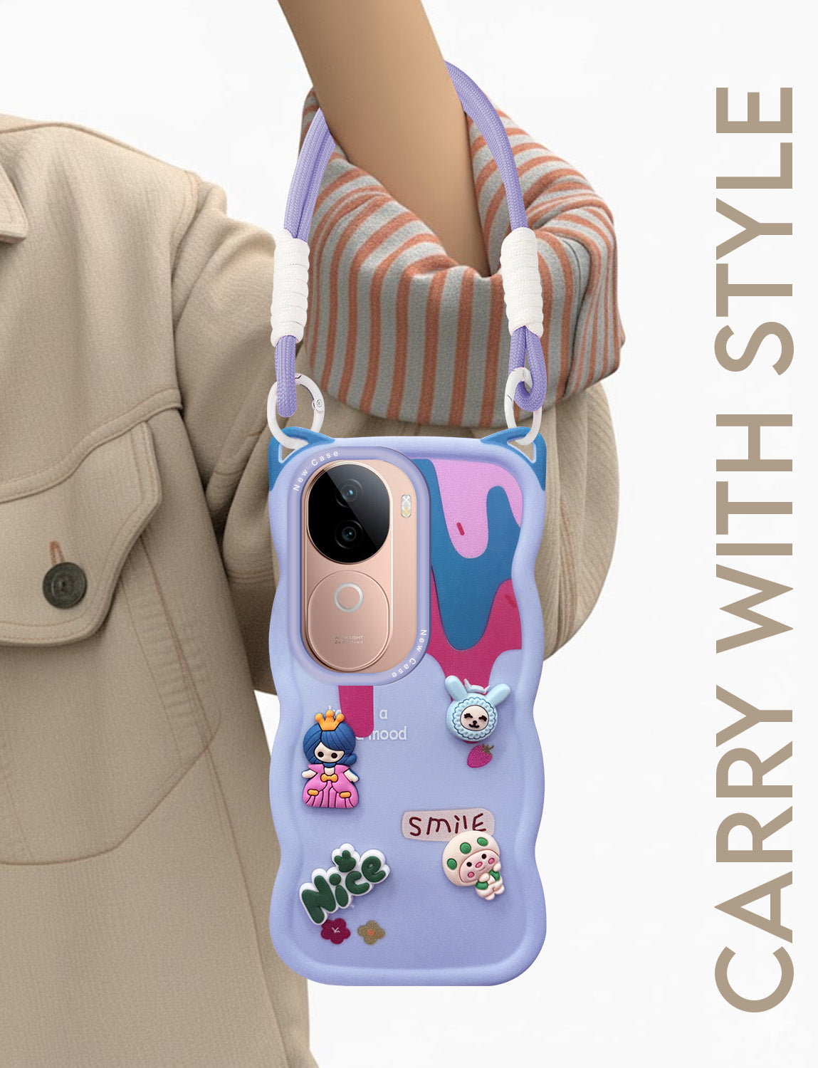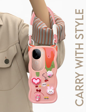 For Vivo V40e Back Case Cover Strap (3D embossed Figures | Strap Holder | 360* Soft Cushion with Camera Bump)