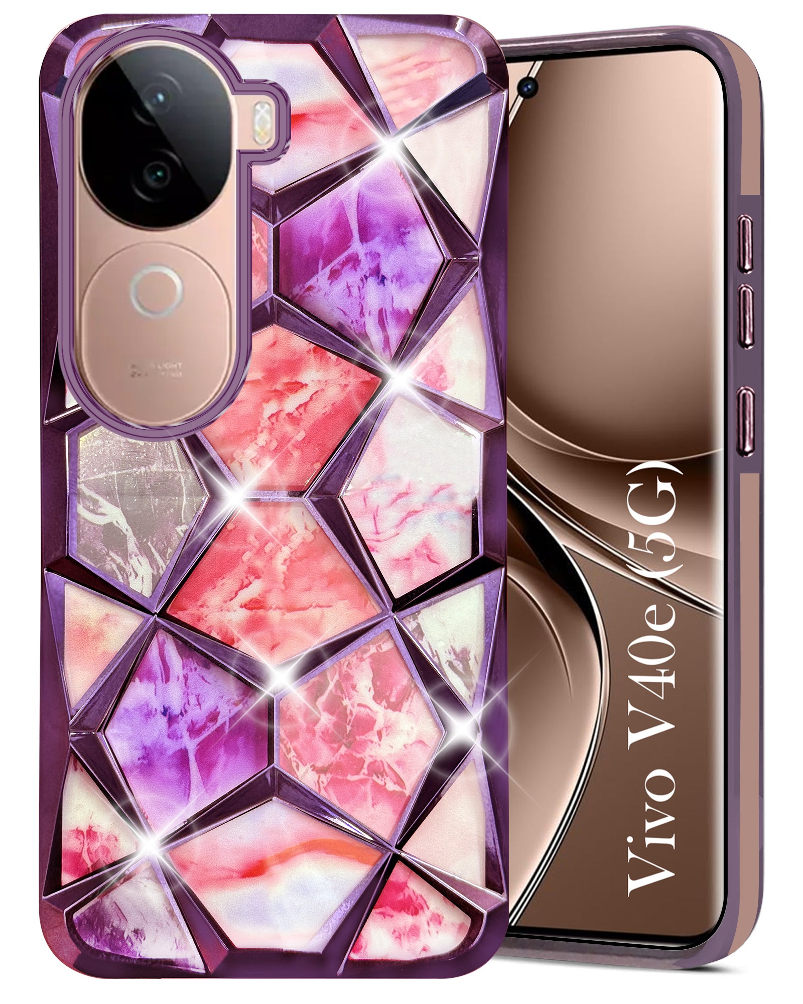 For Vivo V40e Back Cover Case (Dual Design Glitter Sparkle and Detachable Diamond Print Case | Soft and Flexible)