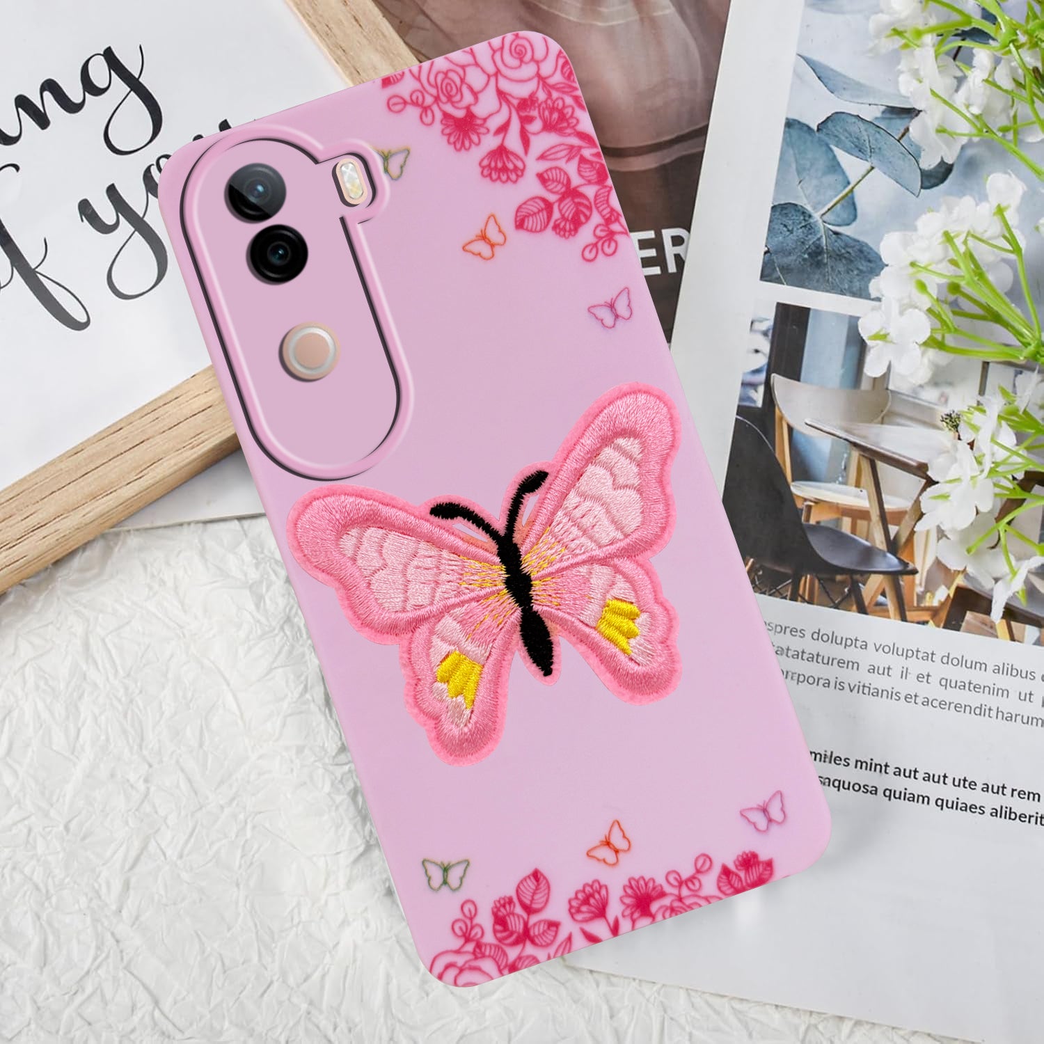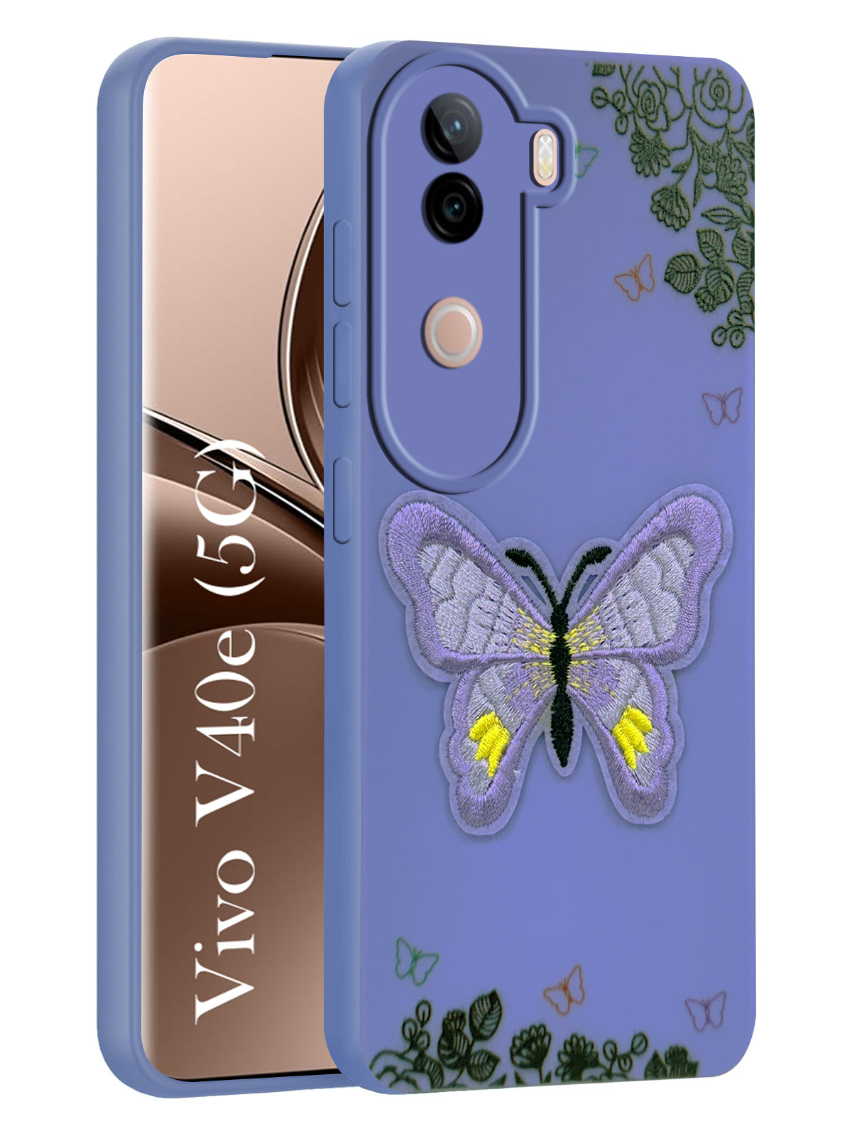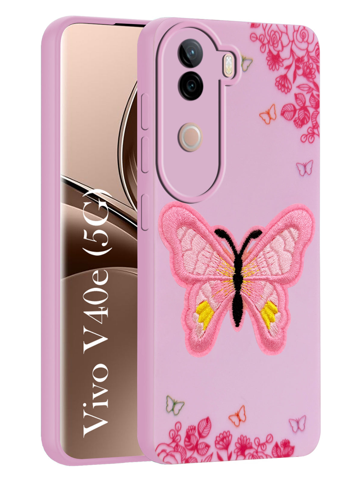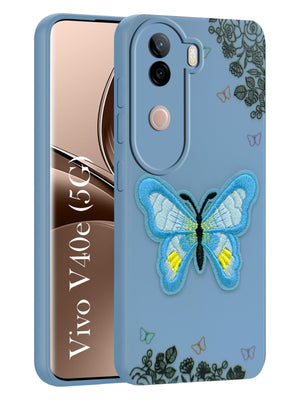 For Vivo V40e Back Cover Case (Soft Butterfly Embroidery | Women Teen Girls | Camera Protection| Matte Silicone)