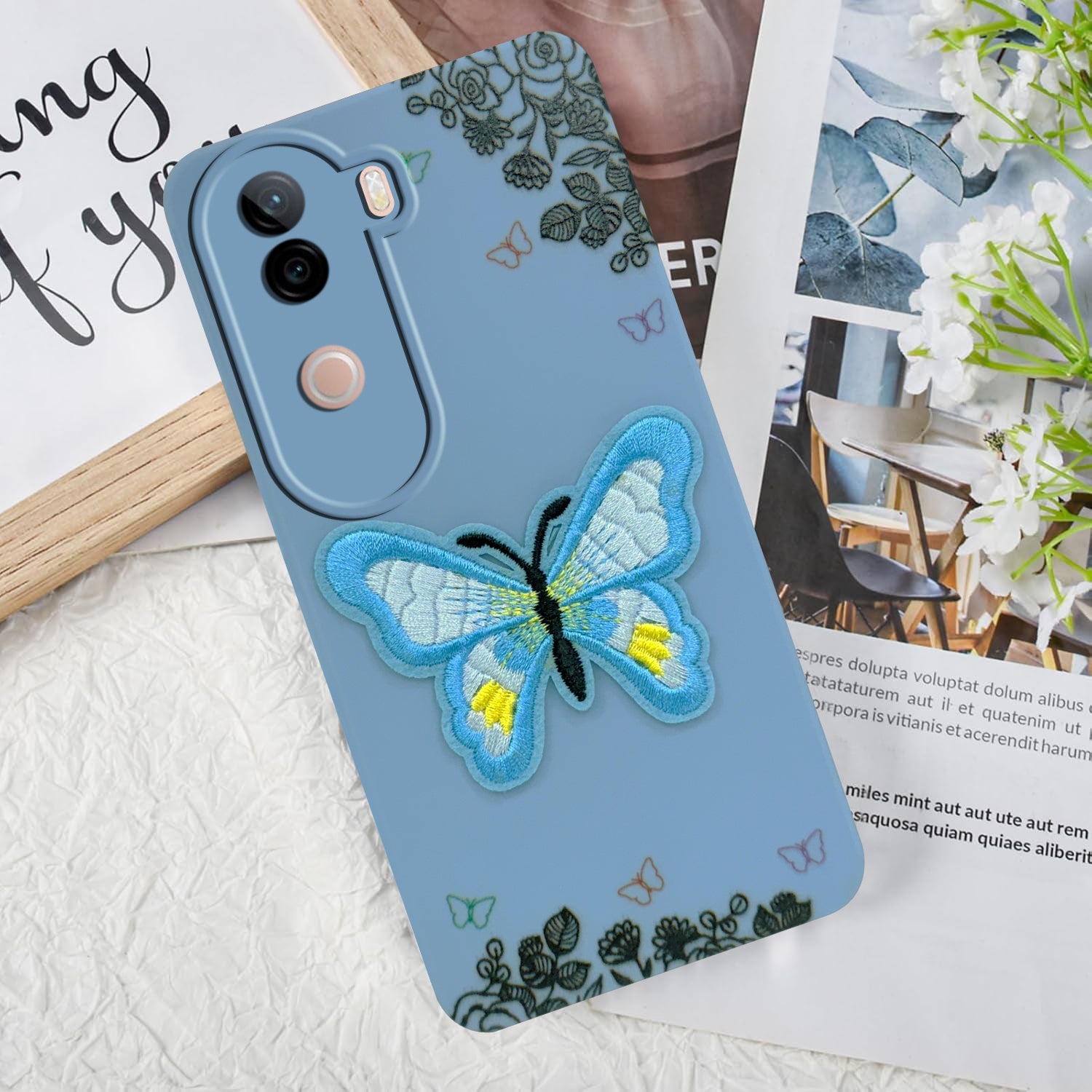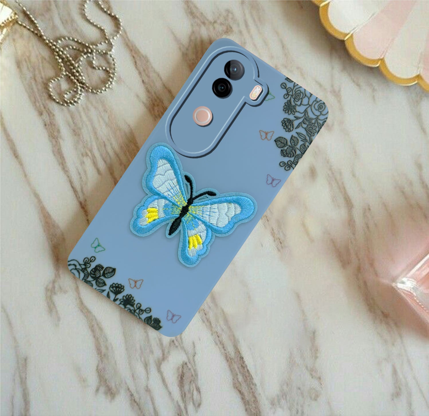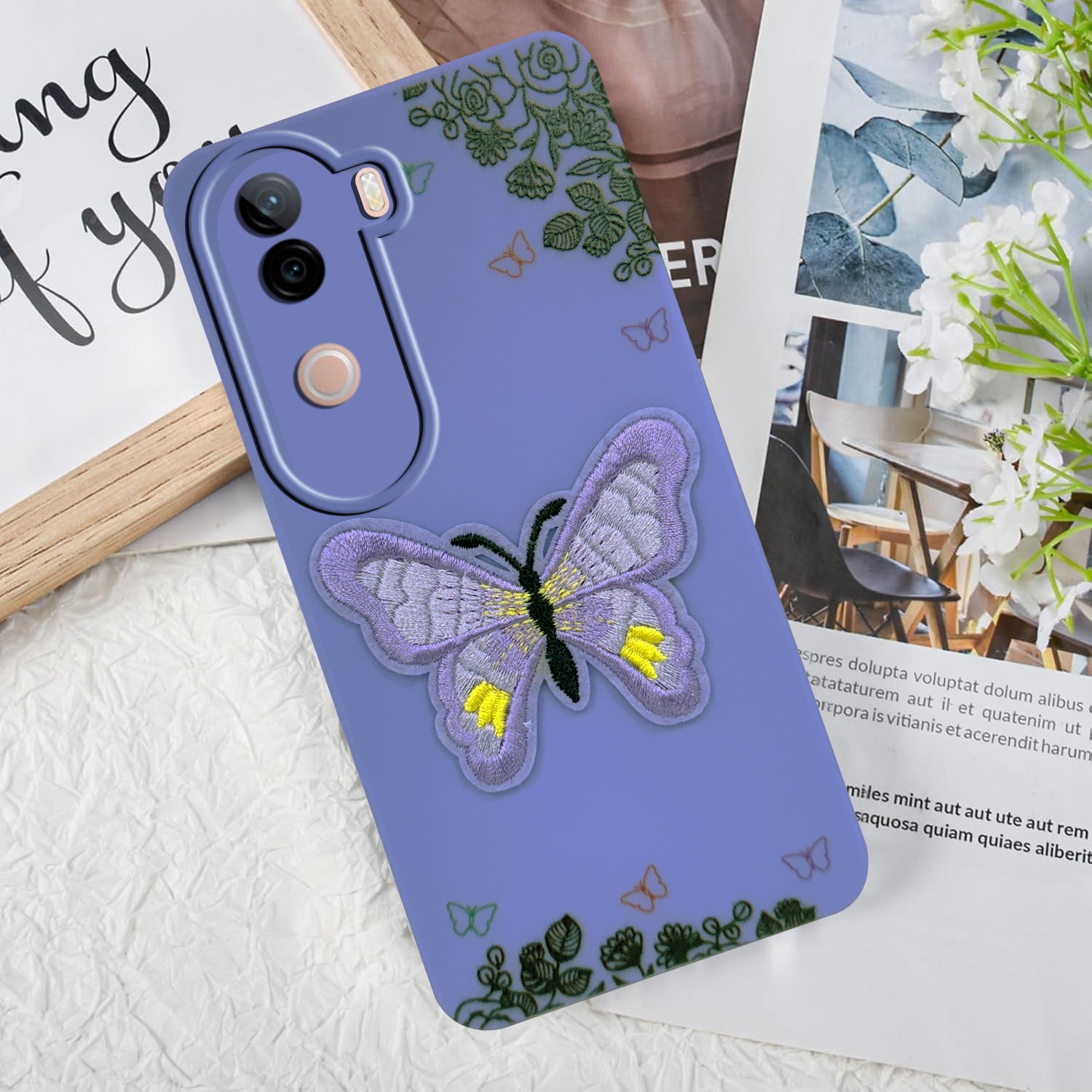 For Vivo V40e Back Cover Case (Soft Butterfly Embroidery | Women Teen Girls | Camera Protection| Matte Silicone)