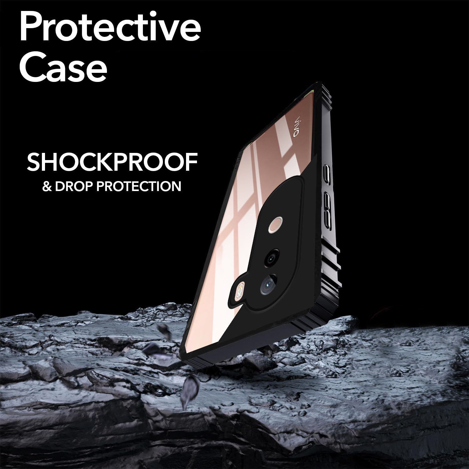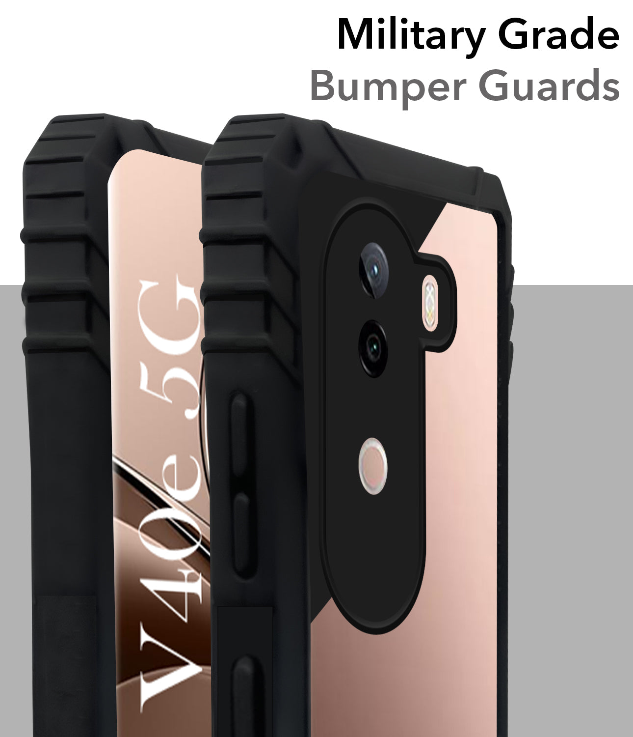For Vivo V40e Back Cover Case (Ultimate Shockproof Bumpers | Anti Yellow | Rugged Armor | Hybrid PC | Black )