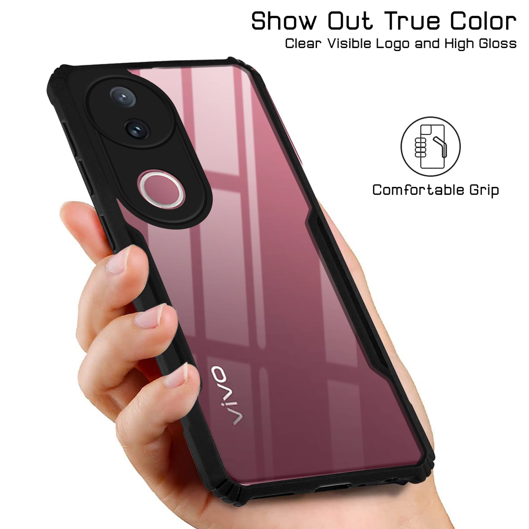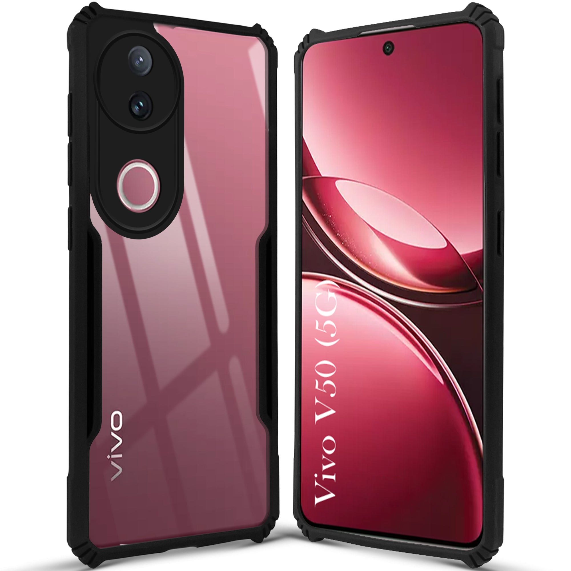 For Vivo V50 | Vivo V50e Back Cover Case ( Shockproof with Polycarbonate Clear Panel | Professional Black)