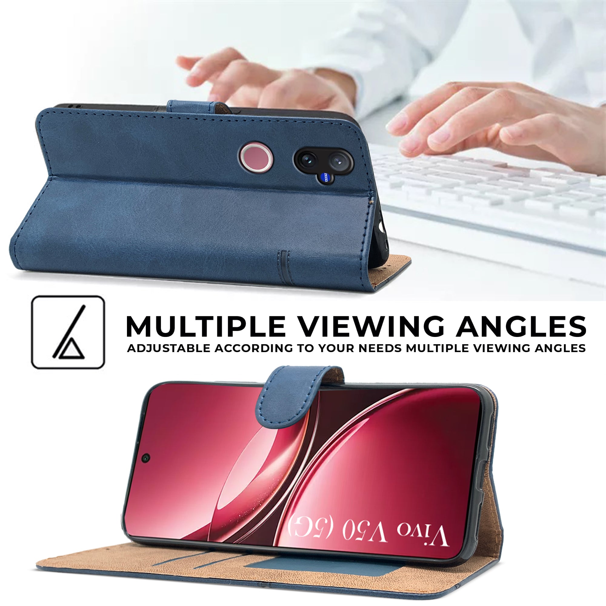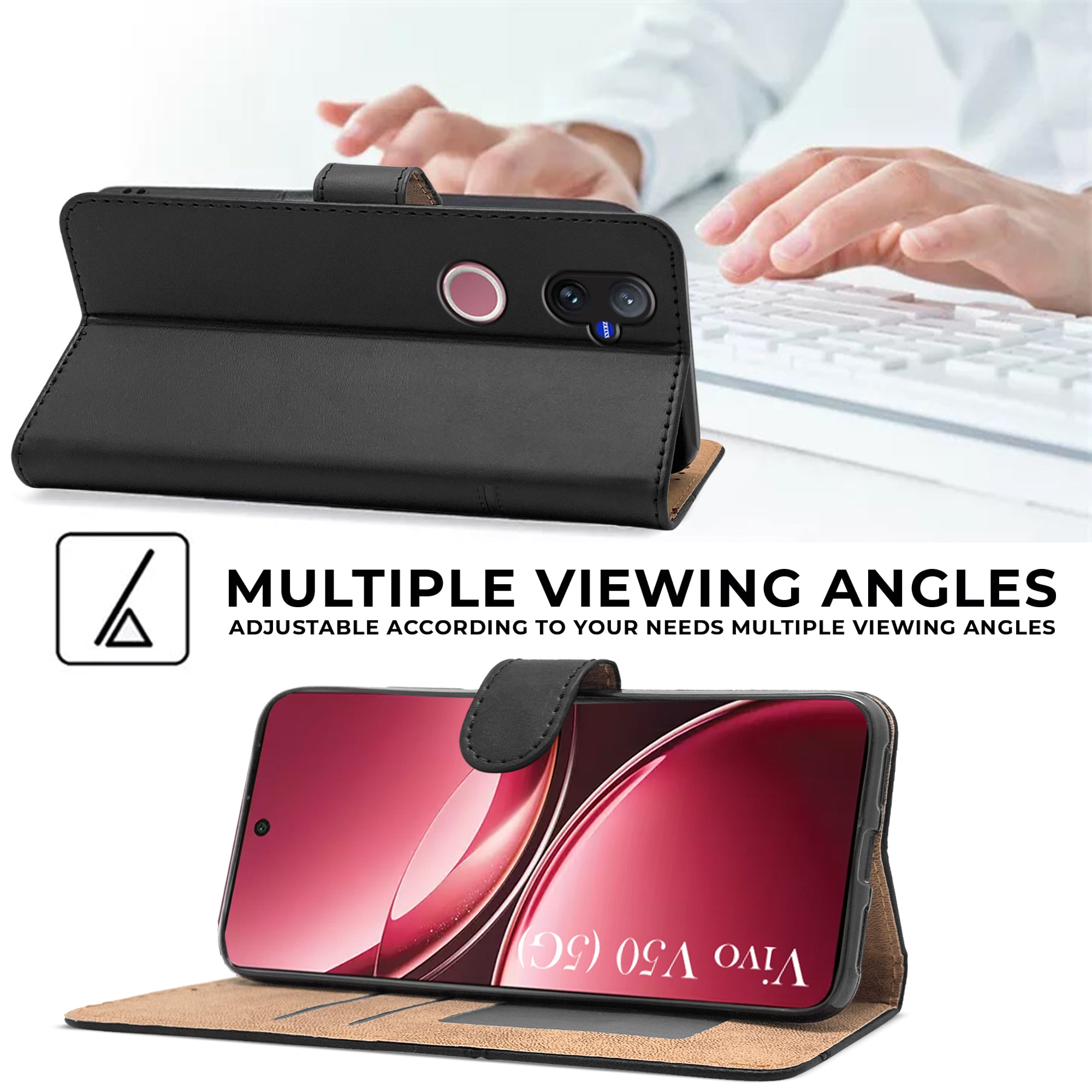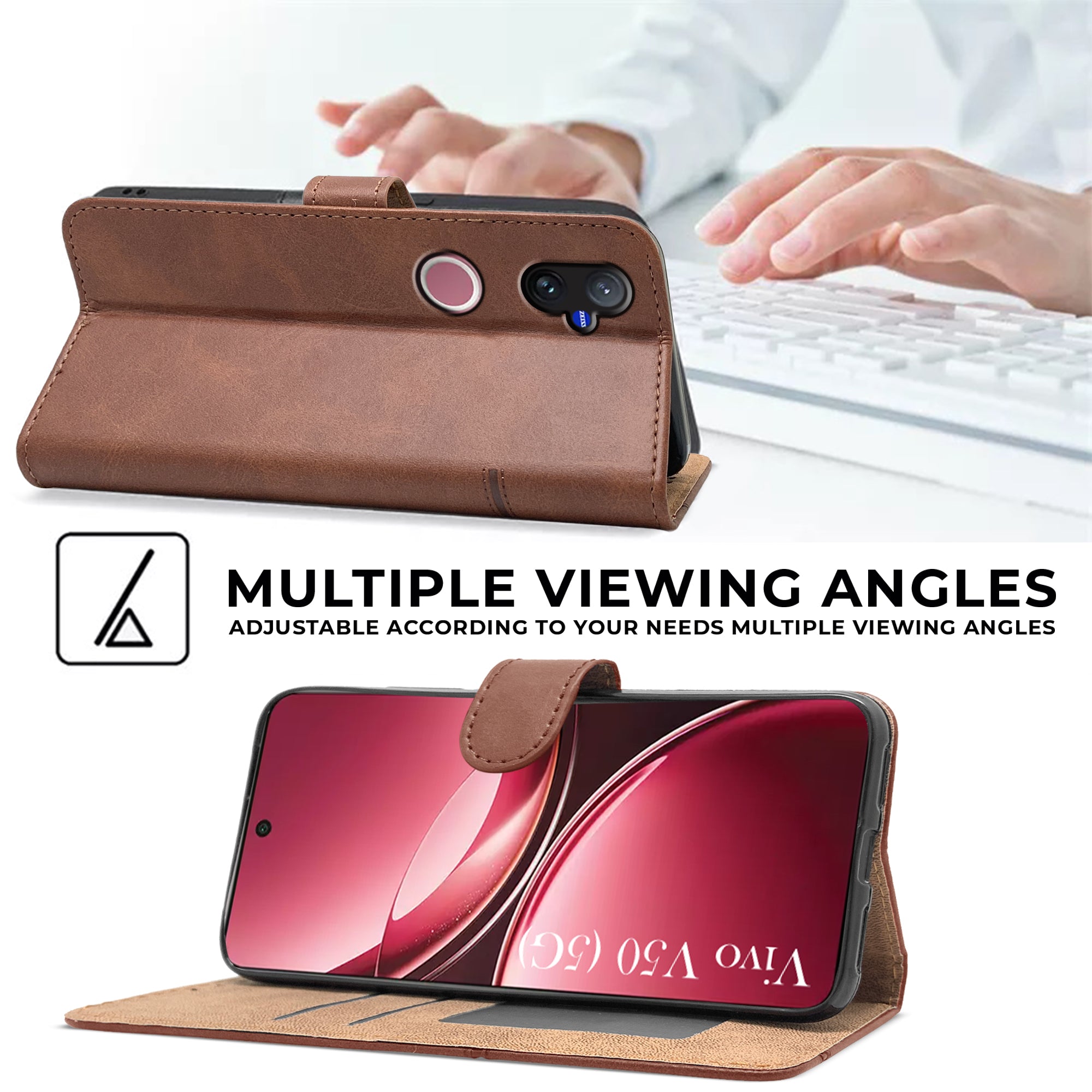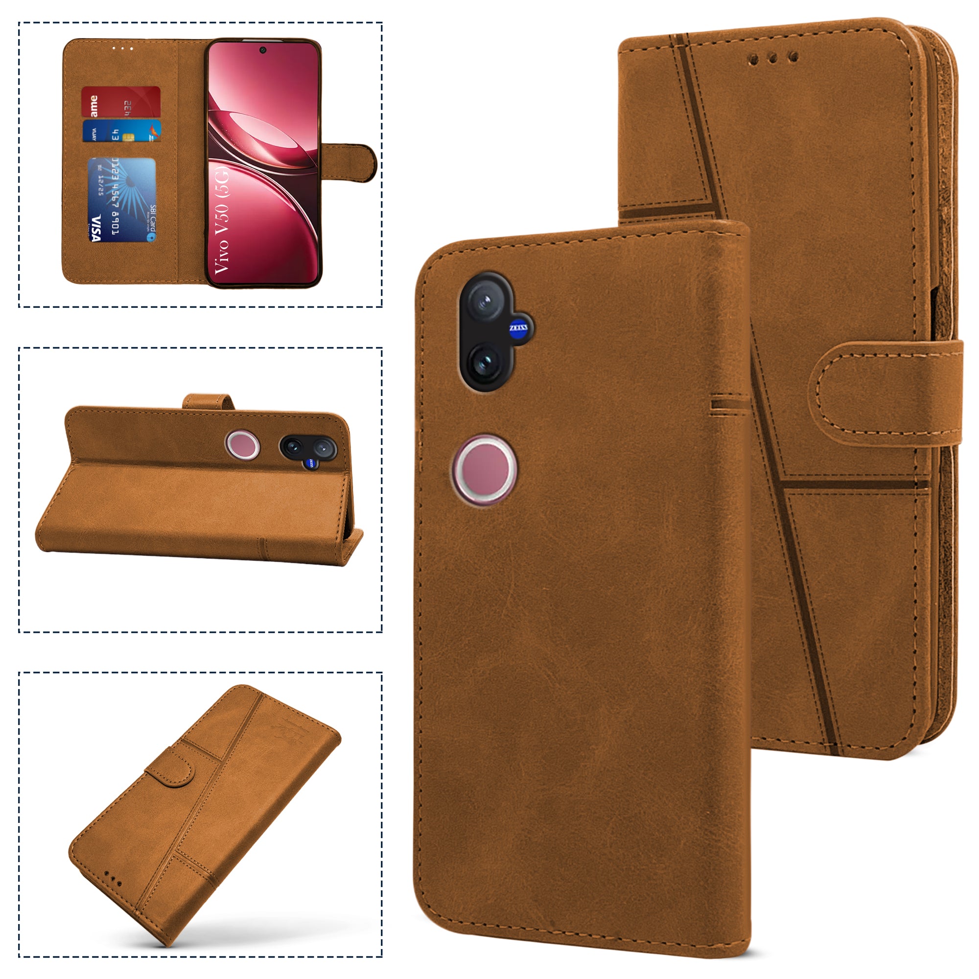 For Vivo V50 | Vivo V50e Flip Cover Case ( Stitched Leather with Magnetic Closure)