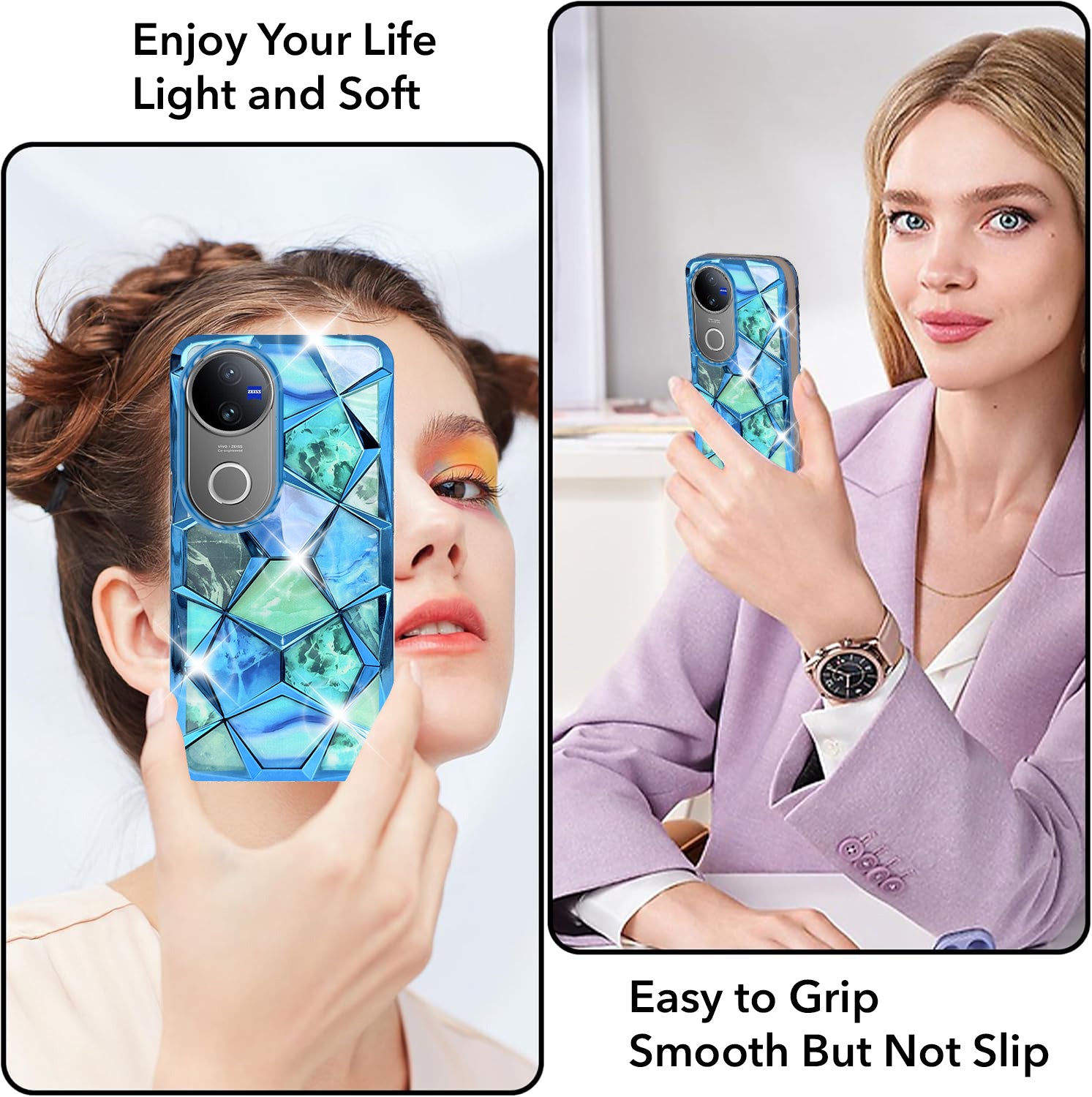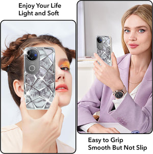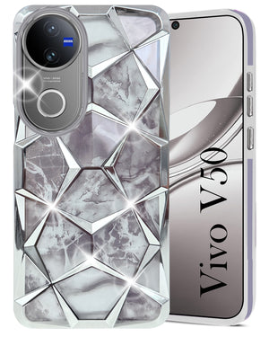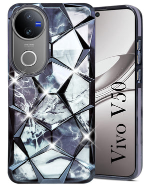 For Vivo V50 | Vivo V50e For Back Cover Case (Dual Design Glitter Sparkle and Detachable Diamond Print Case | Soft and Flexible)