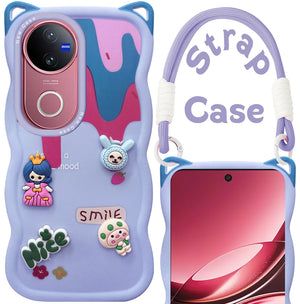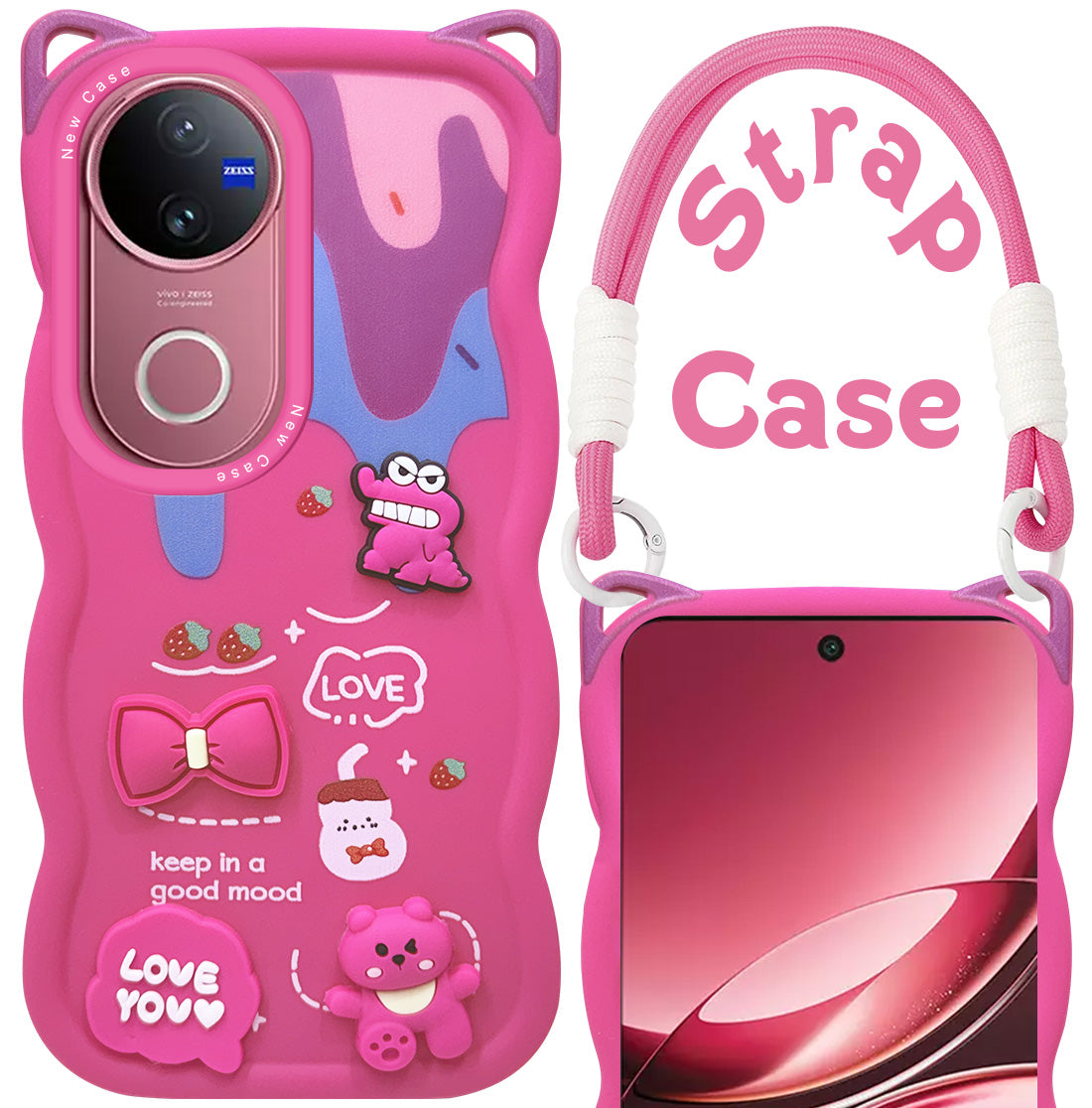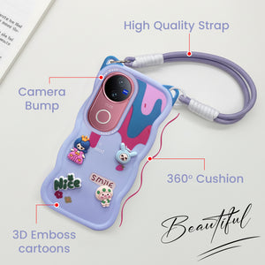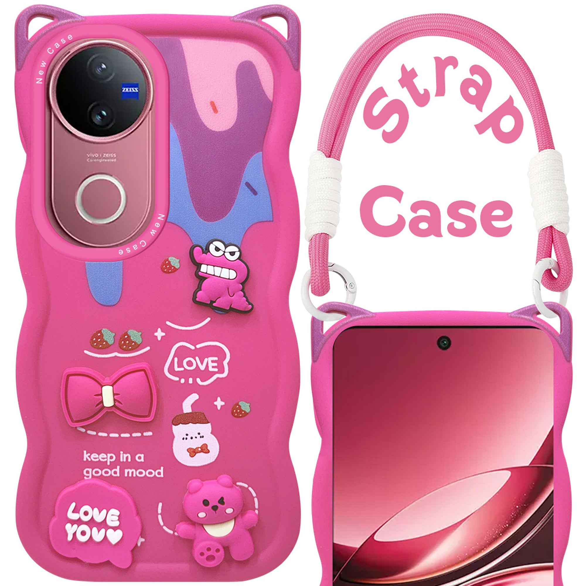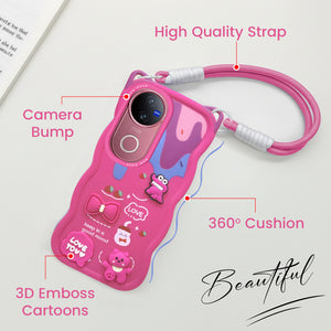 For Vivo V50 | Vivo V50e Back Case Cover Strap(3D embossed Figures | Strap Holder | 360* Soft Cushion with Camera Bump)