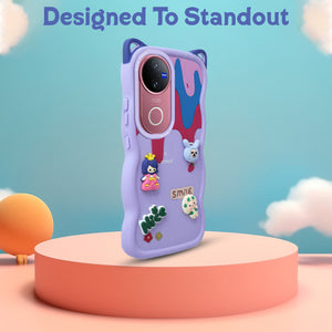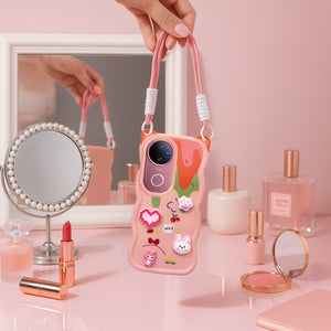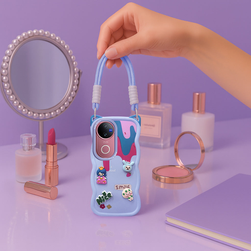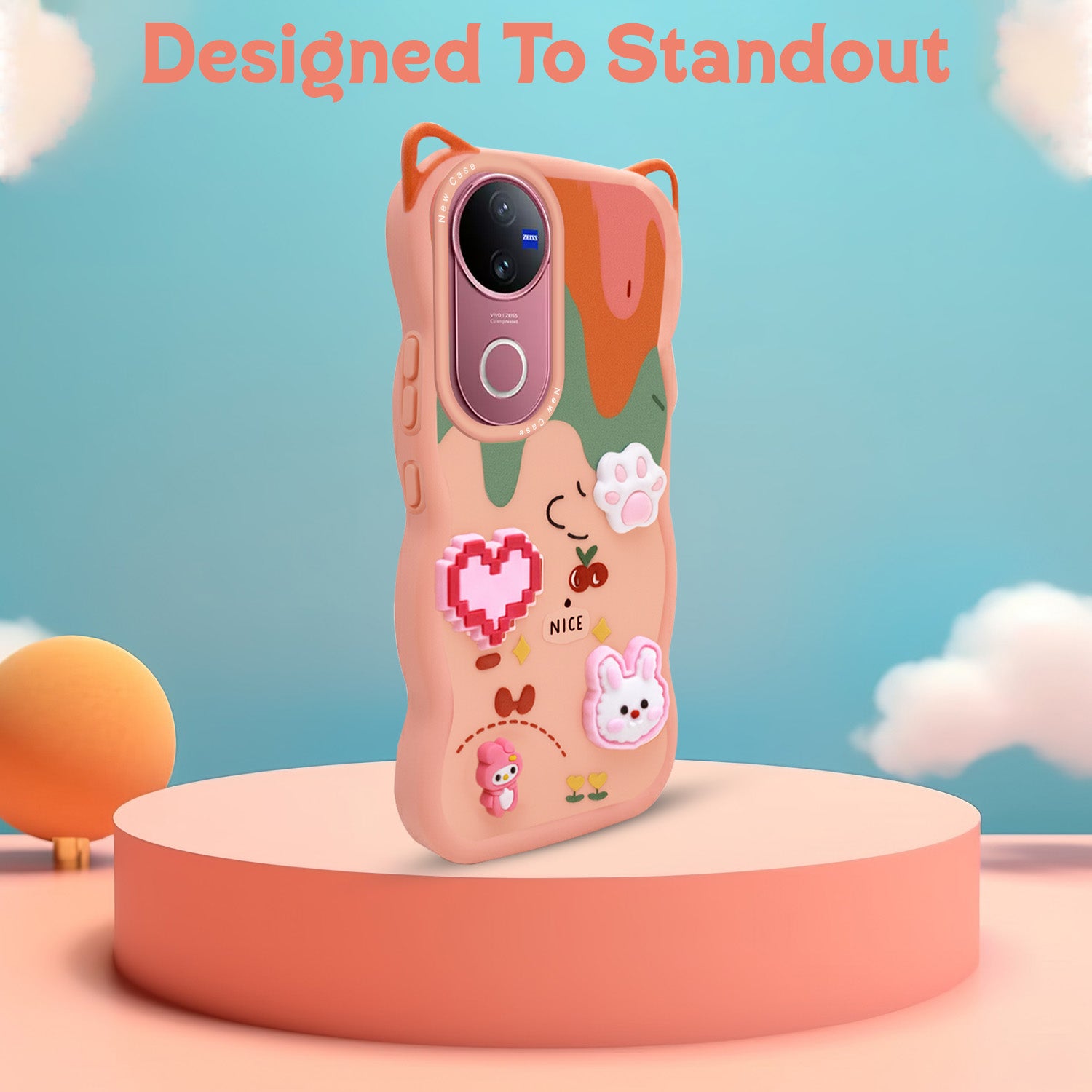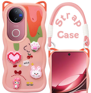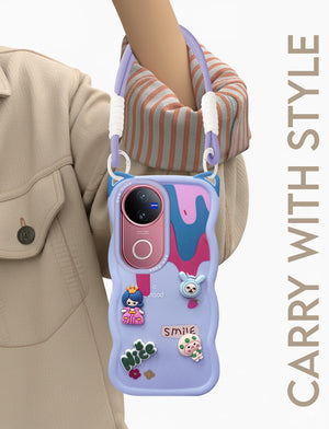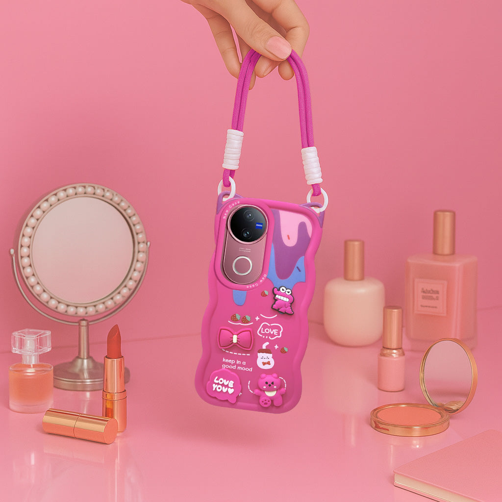 For Vivo V50 | Vivo V50e Back Case Cover Strap(3D embossed Figures | Strap Holder | 360* Soft Cushion with Camera Bump)