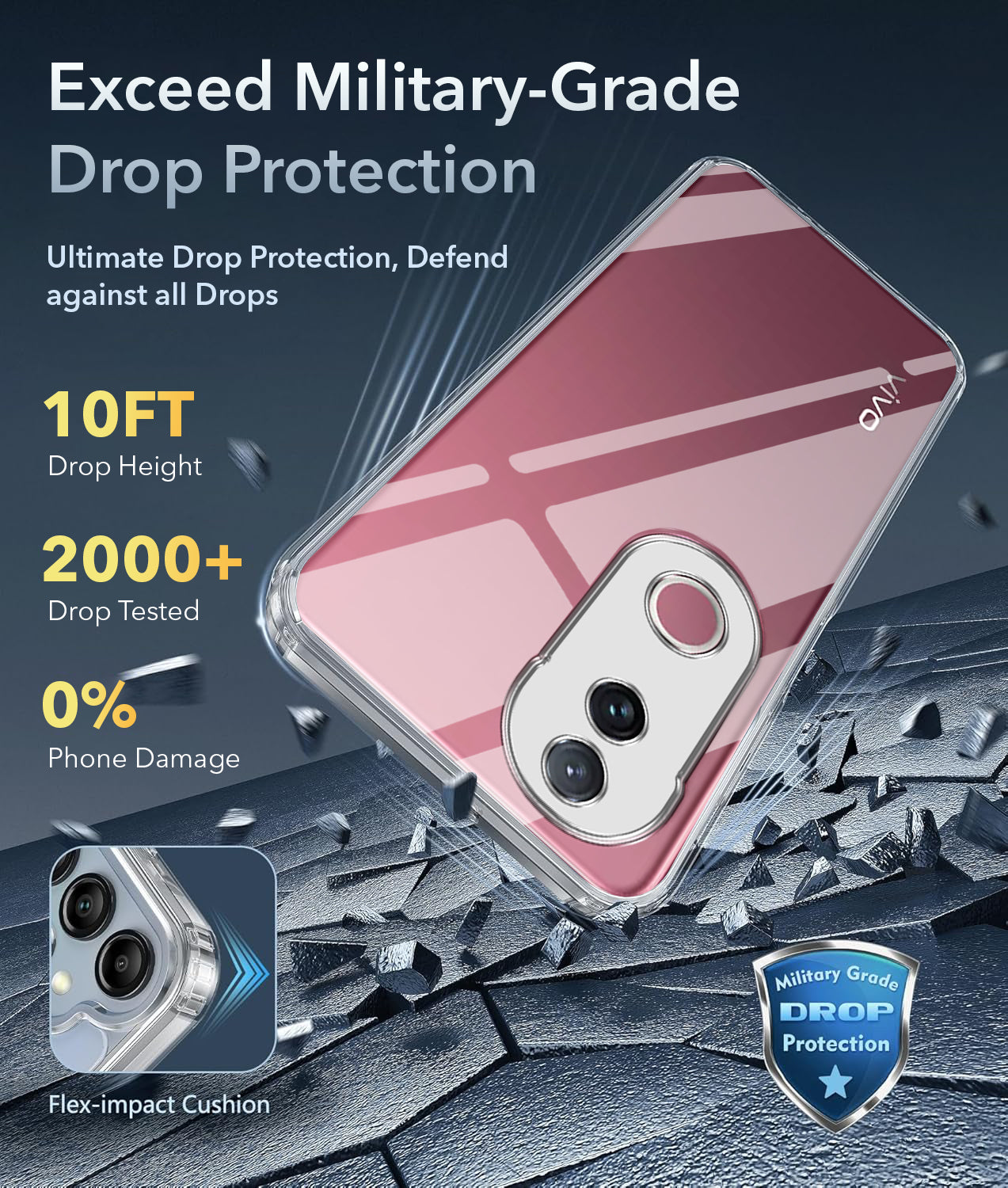 For Vivo V50 | Vivo V50e Back Cover Case (Hybrid Crystal Panel with Side Soft PU | Camera Protection | HD Clear Shockproof)