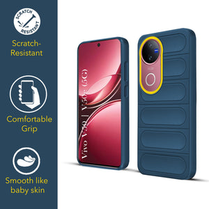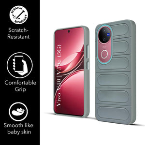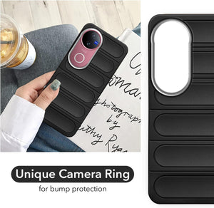 For Vivo V50 | Vivo V50e Back Cover Case (Matte Liquid Silicone| Camera Protection Ring | Professional Wave Design | Shockproof Anti Slip Grip )