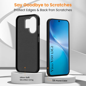 For Vivo V60 | Vivo T4 Pro Back Cover Case (Textured Grip Design | Micro-Fiber Cloth Inside | Slim and Light Weight | Soft Touch and Feel | Black)